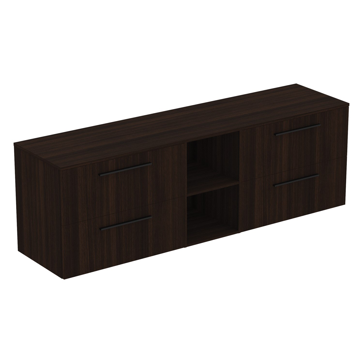 Das i.life B Möbel-Set von Ideal Standard ist die perfekte Wahl für ein stilvolles und funktionales Badezimmer. Das Set besteht aus zwei Möbelwaschtischunterschränken, die jeweils zwei Auszüge haben, Möbelgriffen, einem Element mit zwei offenen Fächern und einer Waschtischplatte.