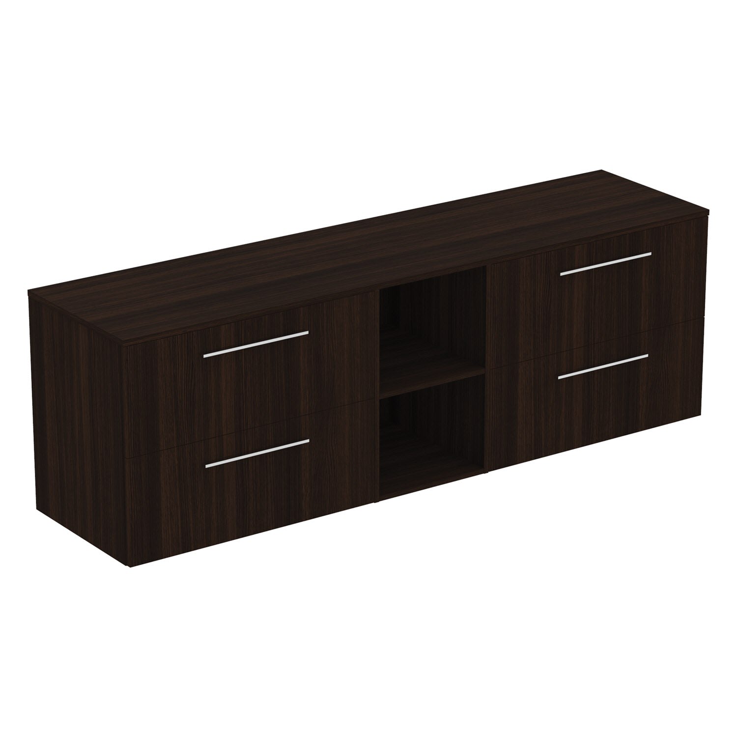 Das i.life B Möbel-Set von Ideal Standard ist die perfekte Wahl für ein stilvolles und funktionales Badezimmer. Das Set besteht aus zwei Möbelwaschtischunterschränken, die jeweils zwei Auszüge haben, Möbelgriffen, einem Element mit zwei offenen Fächern und einer Waschtischplatte.