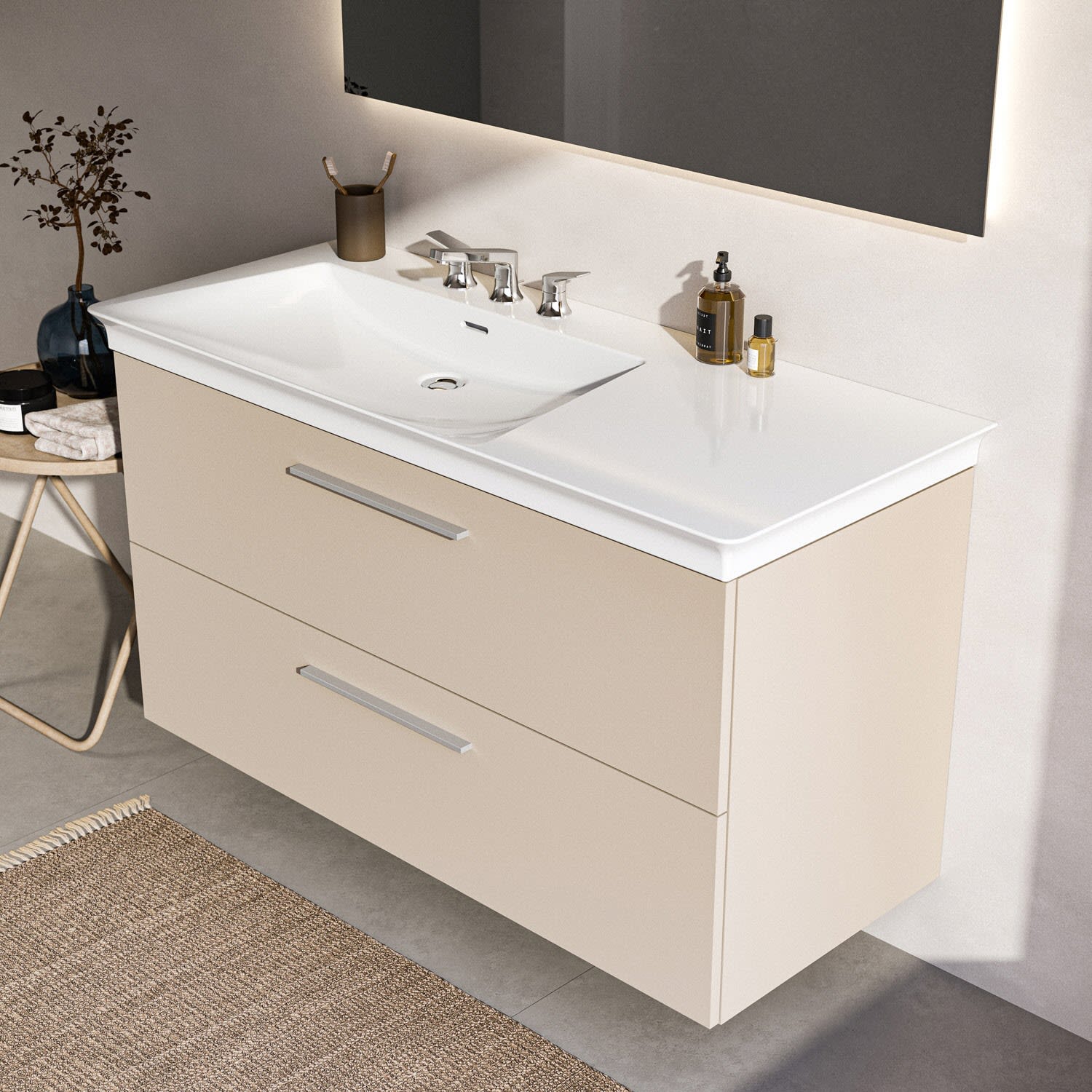 Ideal Standard i.life B Waschtischunterschrank 100 cm mit 2 Auszügen, asymmetrisch links