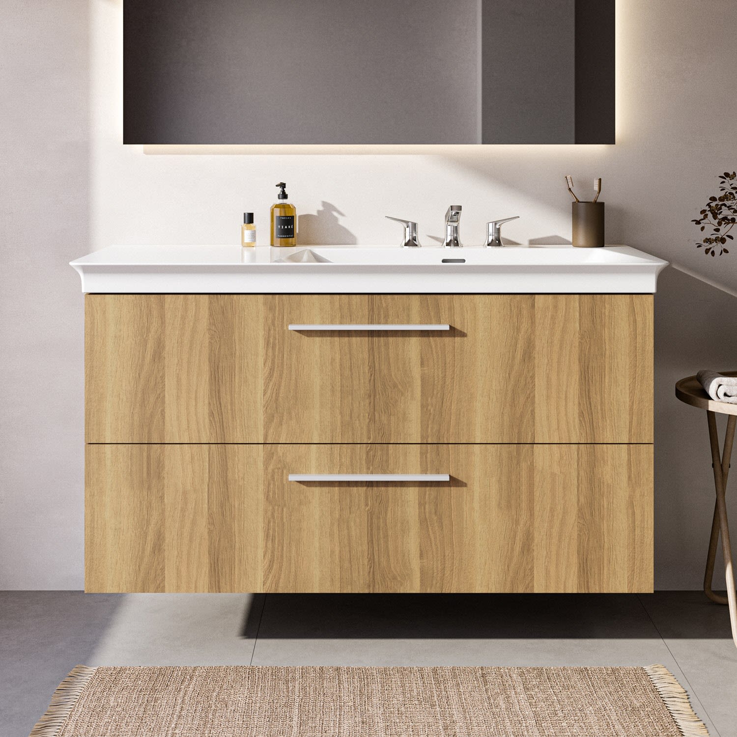 Mit dem i.life B Möbelwaschtischunterschrank von Ideal Standard schaffen Sie stilvolle Ordnung in Ihrem Badezimmer. Die elegante Kollektion i.life ist ein echtes Beispiel für Design, das sich zugänglich und praktisch anfühlt – unabhängig von der Größe oder Form Ihres Badezimmers. Der Möbelwaschtischunterschrank bietet mit seinen beiden Auszügen ausreichend Stauraum für alle wichtigen Badutensilien. Der Softclose-Mechanismus ermöglicht ein geräuschloses und sanftes Schließen für eine angenehme Nutzung. Ob im hektischen Alltag oder bei einem entspannten Morgenritual – der Softclose-Mechanismus sorgt für Komfort, auf den Sie nie wieder verzichten möchten. Der Schrank ist aus hochwertigem, melaminbeschichteten Holzwerkstoff gefertigt. Ideal Standard setzt sich für Nachhaltigkeit ein: 100% des für die Möbel verwendeten Holzes stammen aus nachhaltigen Quellen und sind PEFC-zertifiziert.