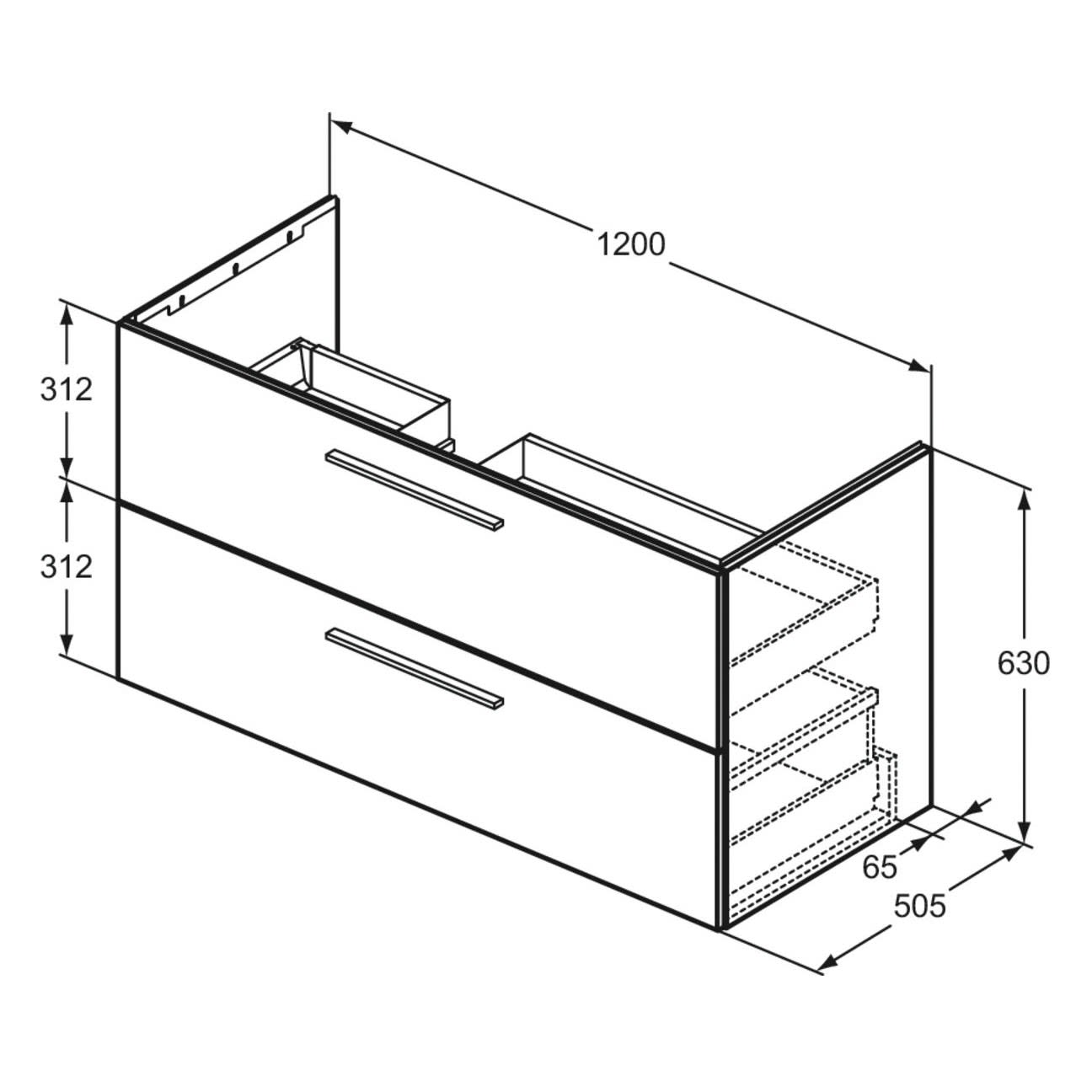 Ideal Standard i.life B Waschtischunterschrank 120 cm mit 2 Auszügen, asymmetrisch links