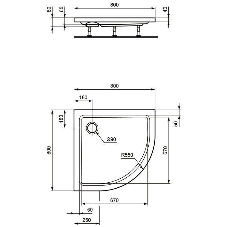 Ideal Standard Hotline Neu Viertelkreis-Duschwanne 80 x 80 cm
