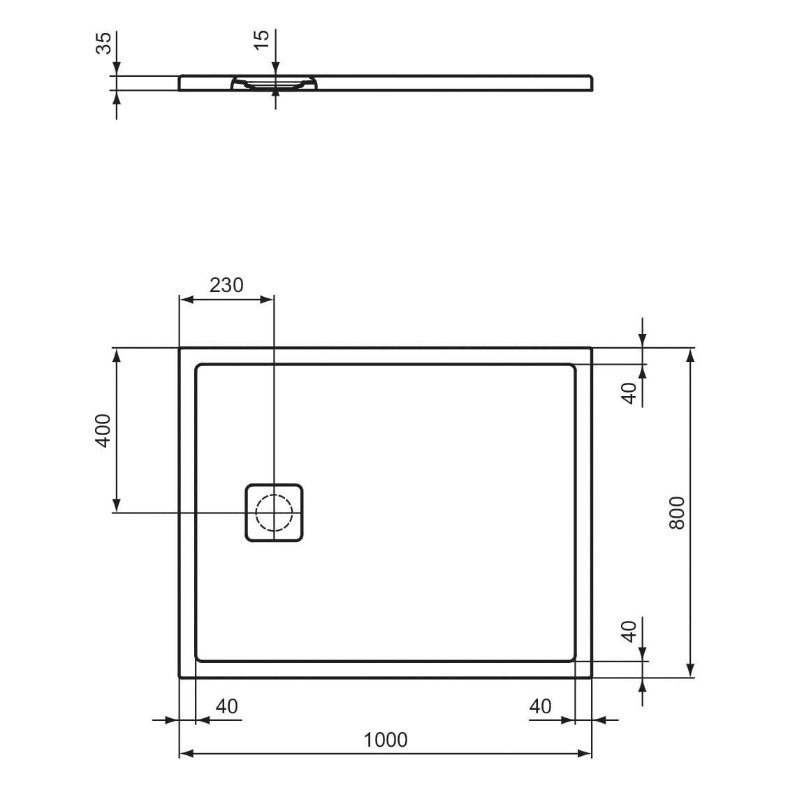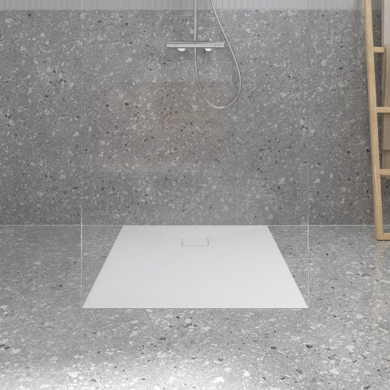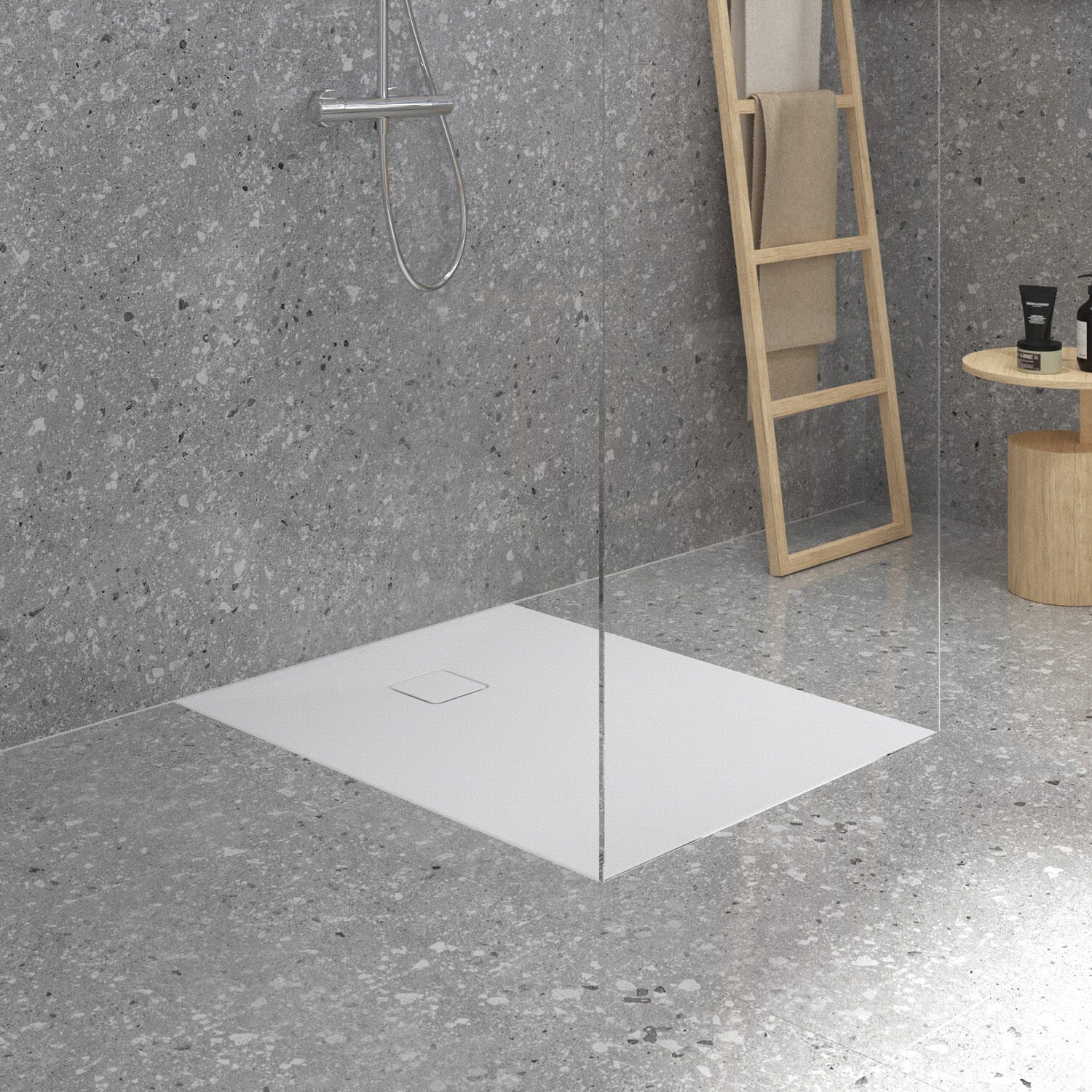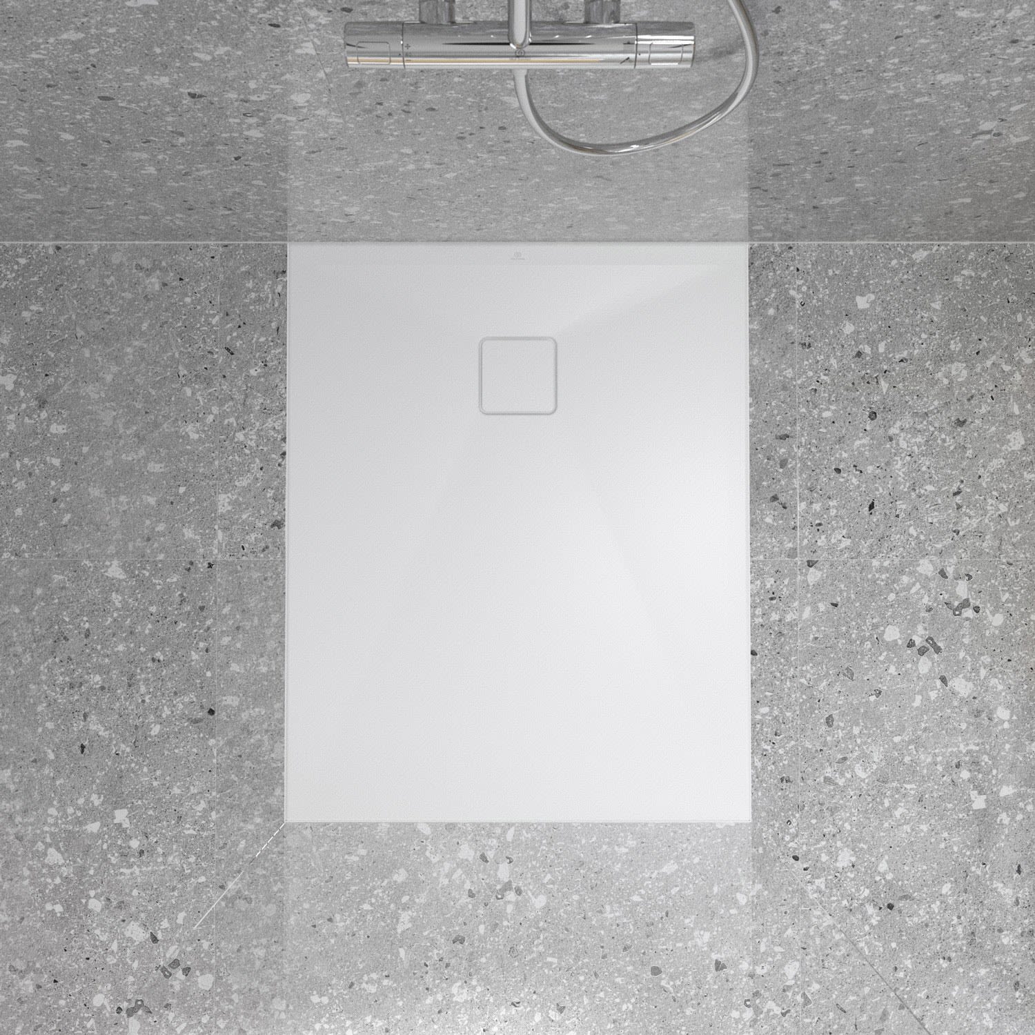 Ideal Standard Lastani Duschwanne 100 x 80 cm aus Sanitär-Acryl mit Polymer-Mineralgusskern (StoneTech™), Antirutsch-Oberfläche, bodenebener Einbau