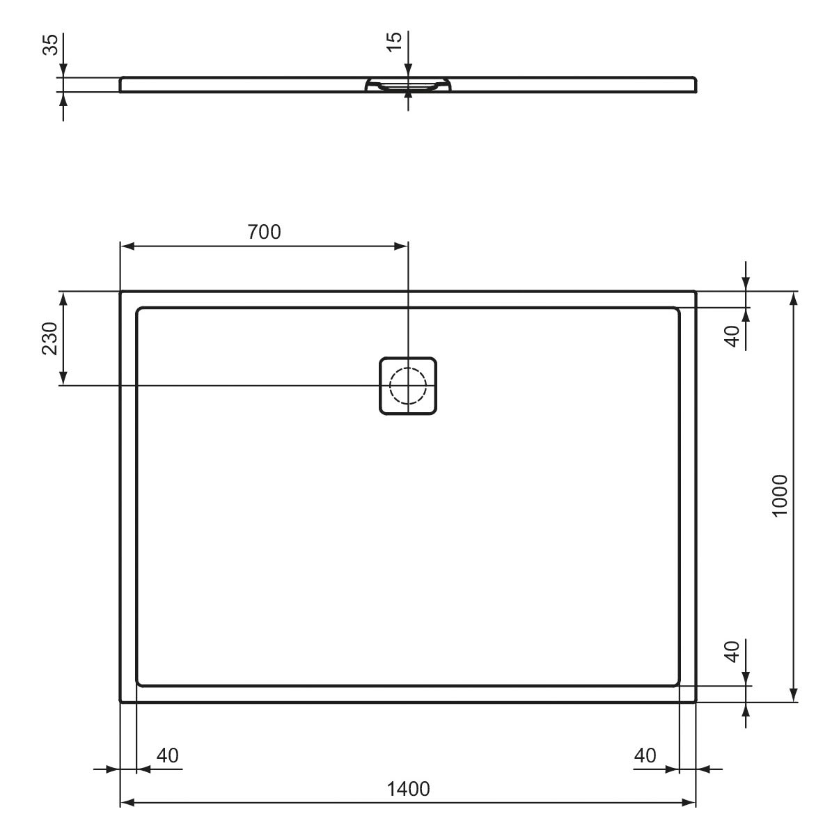 Ideal Standard Lastani Duschwanne 140 x 100 cm aus Sanitär-Acryl mit Polymer-Mineralgusskern (StoneTech™), Antirutsch-Oberfläche, bodenebener Einbau