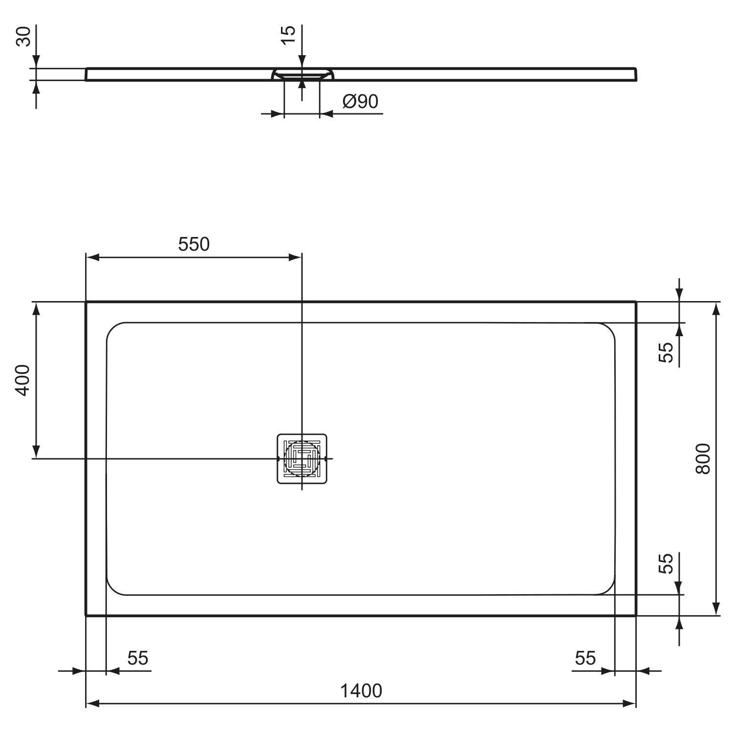 Ideal Standard Ultra Flat S + Rechteck-Brausewanne 140 x 80 cm, Ablaufposition: seitlich 55 cm