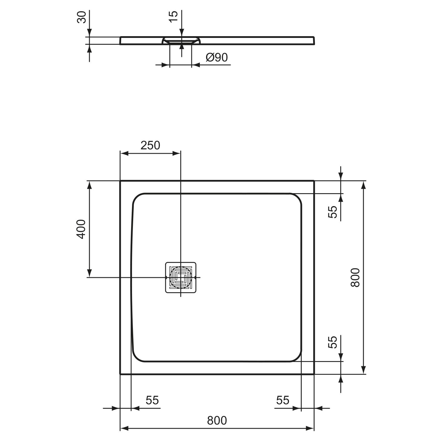 Ideal Standard Ultra Flat S + Quadrat-Brausewanne 80 x 80 cm, Ablaufposition: seitlich 25 cm