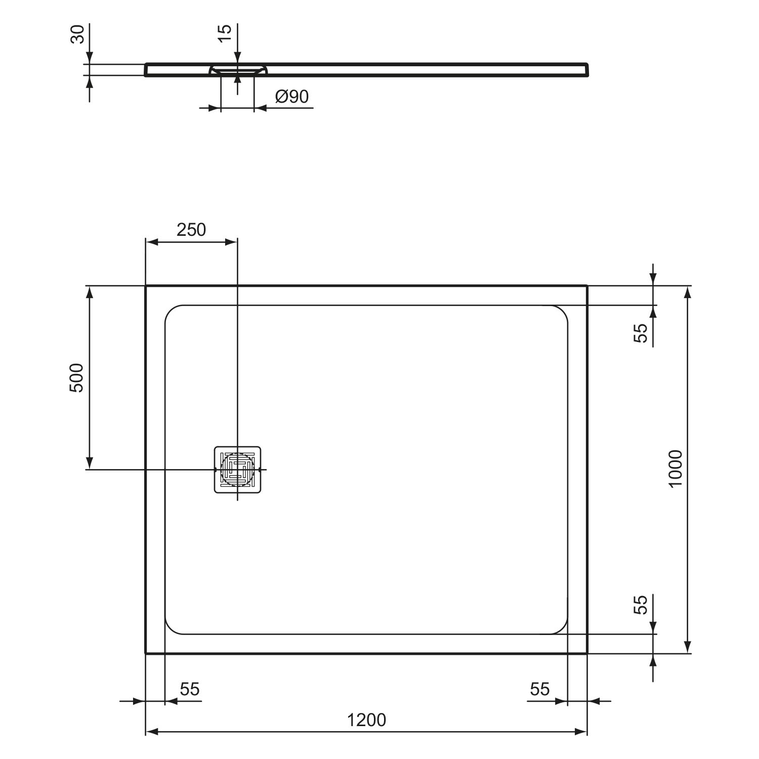 Ideal Standard Ultra Flat S + Rechteck-Brausewanne 120 x 100 cm, Ablaufposition: seitlich 25 cm