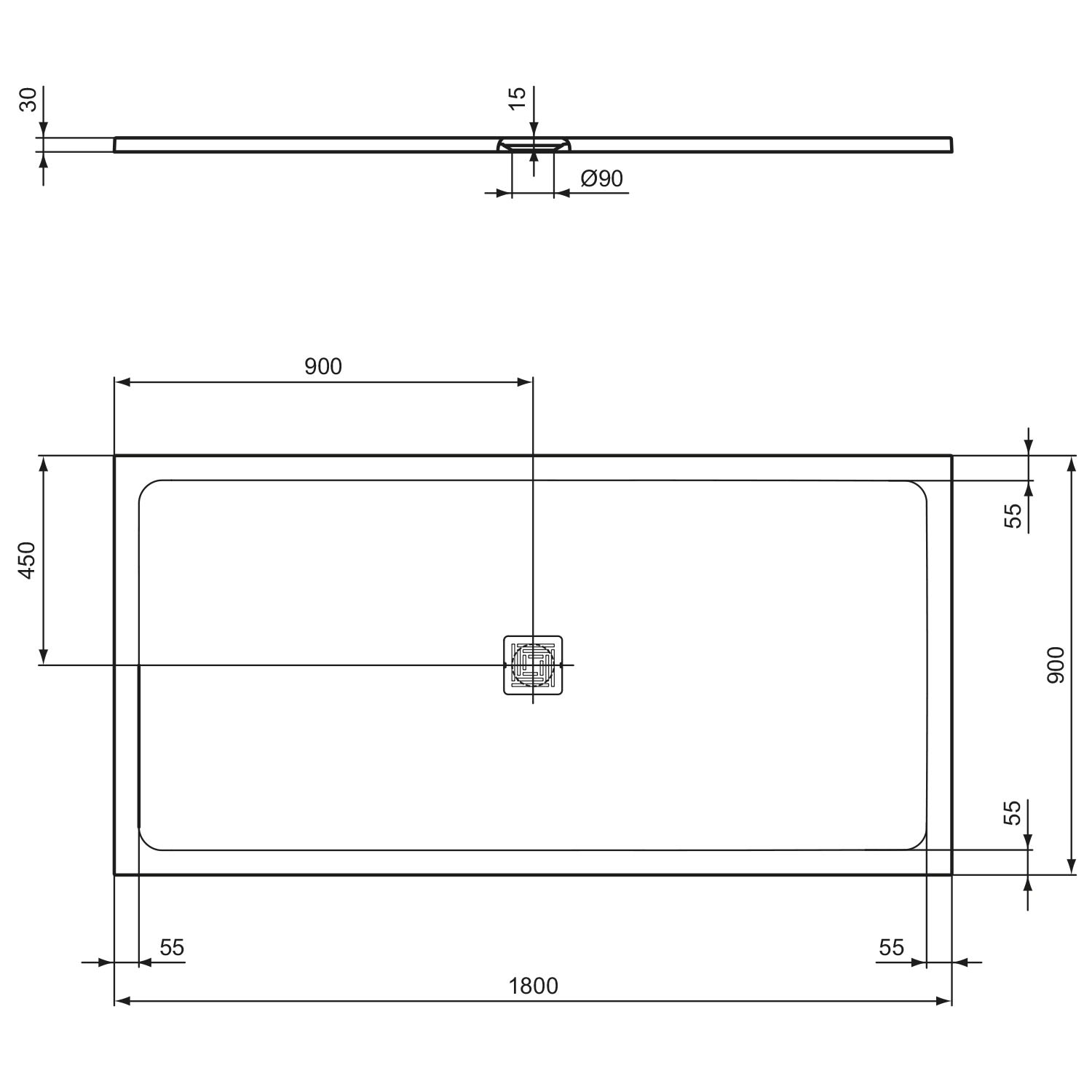 Ideal Standard Ultra Flat S + Rechteck-Brausewanne 180 x 90 cm, Ablaufposition: zentriert