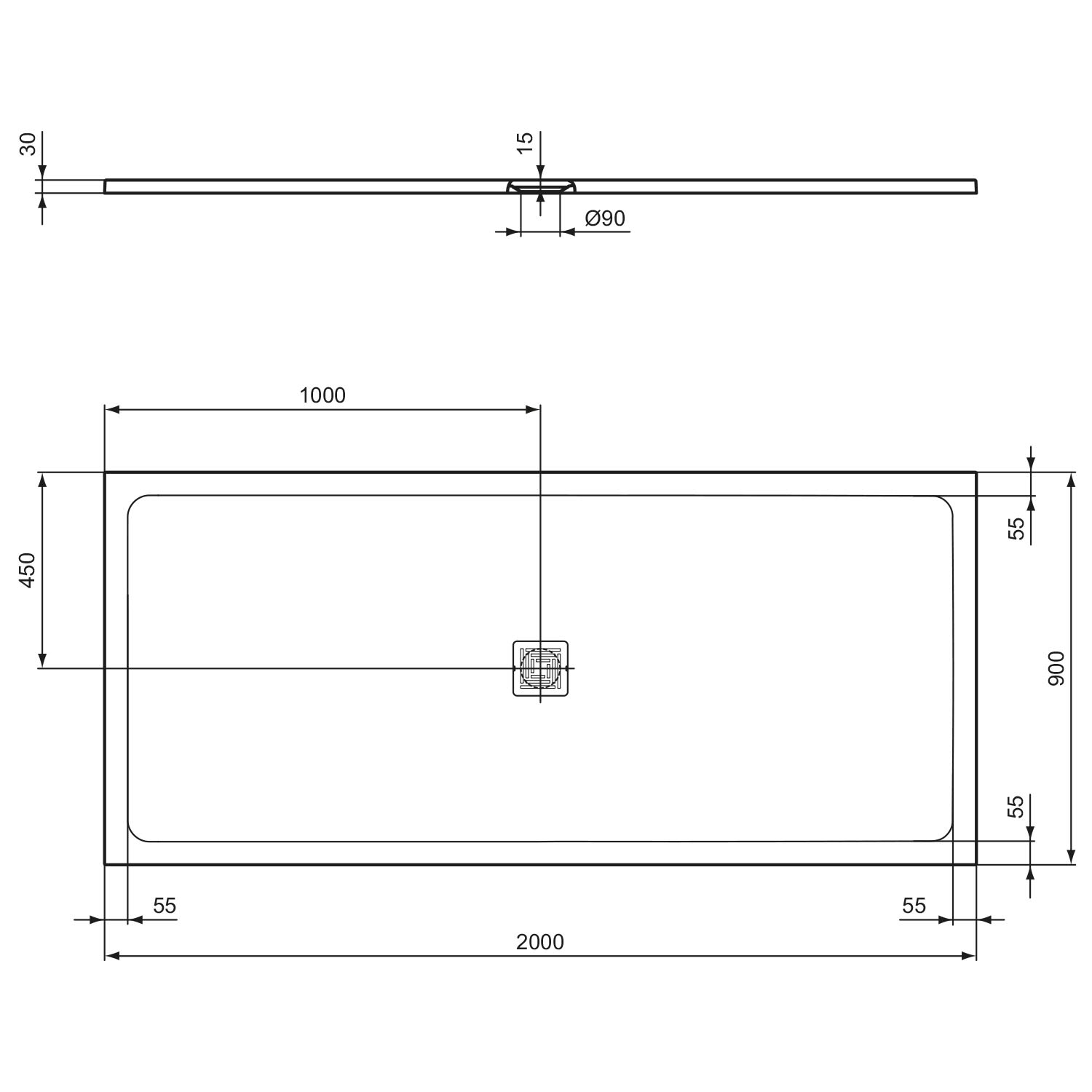 Ideal Standard Ultra Flat S + Rechteck-Brausewanne 200 x 90 cm, Ablaufposition: zentriert