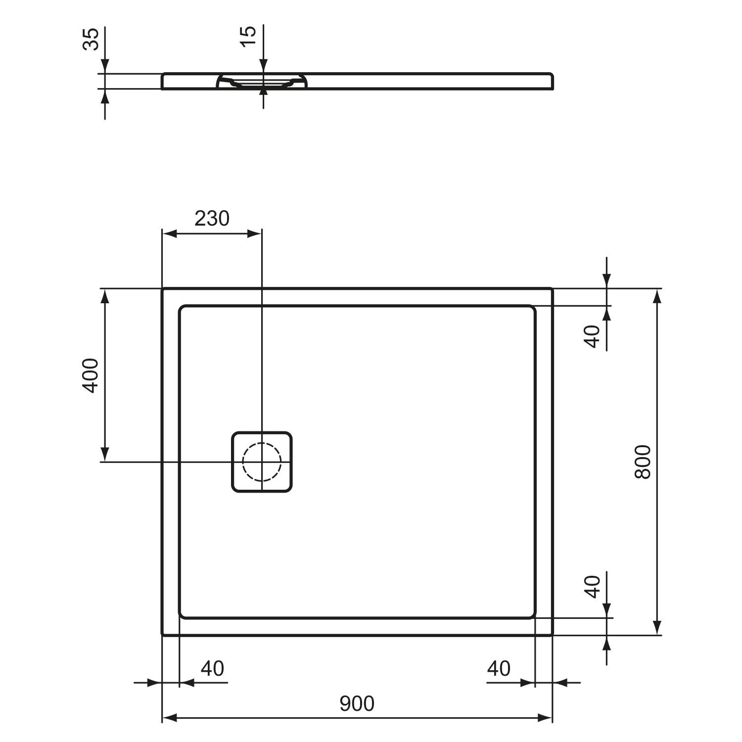 Ideal Standard Ultra Flat Evo Brausewanne 90 x 80 cm