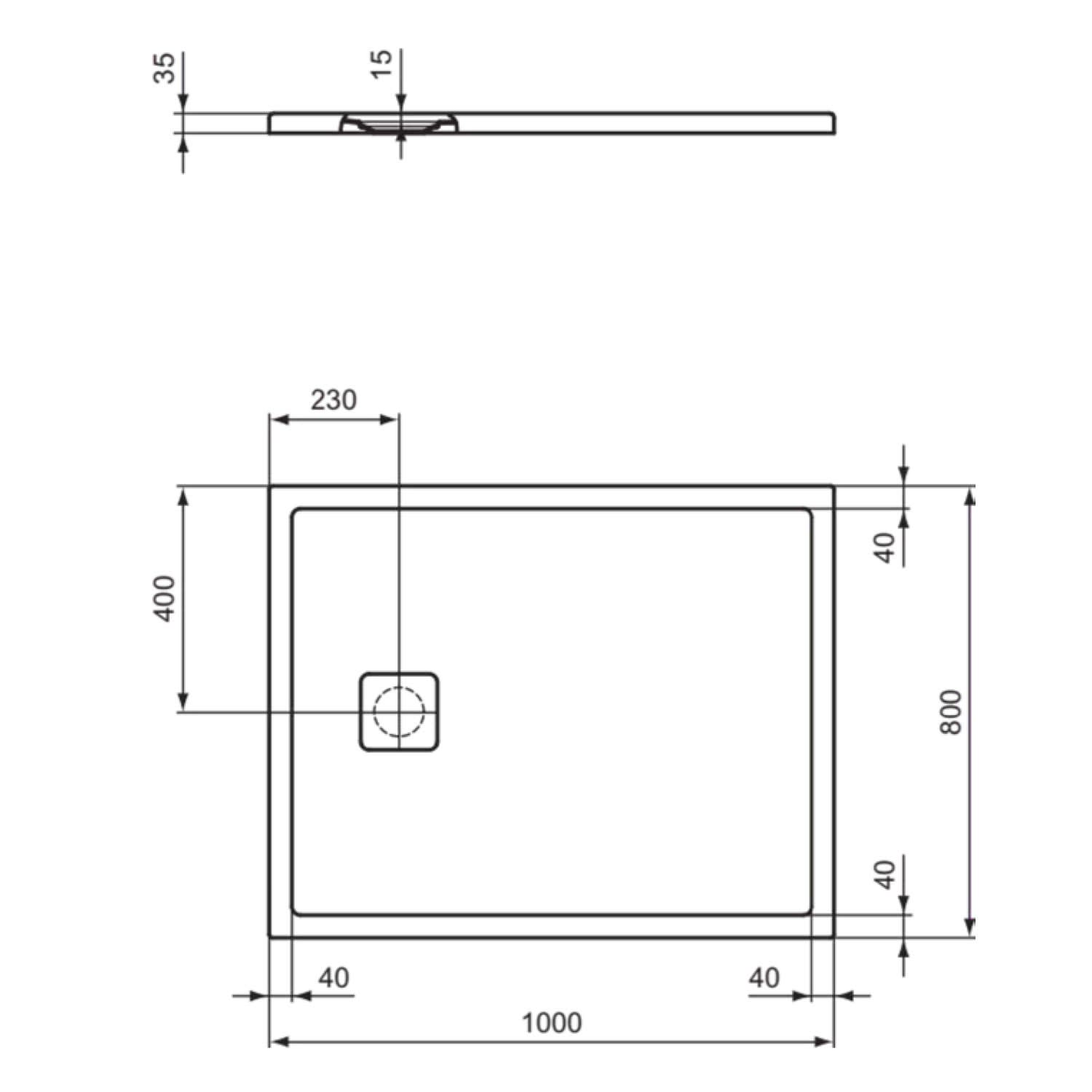 - Position Ablaufloch: Mitte Längs/Querseite