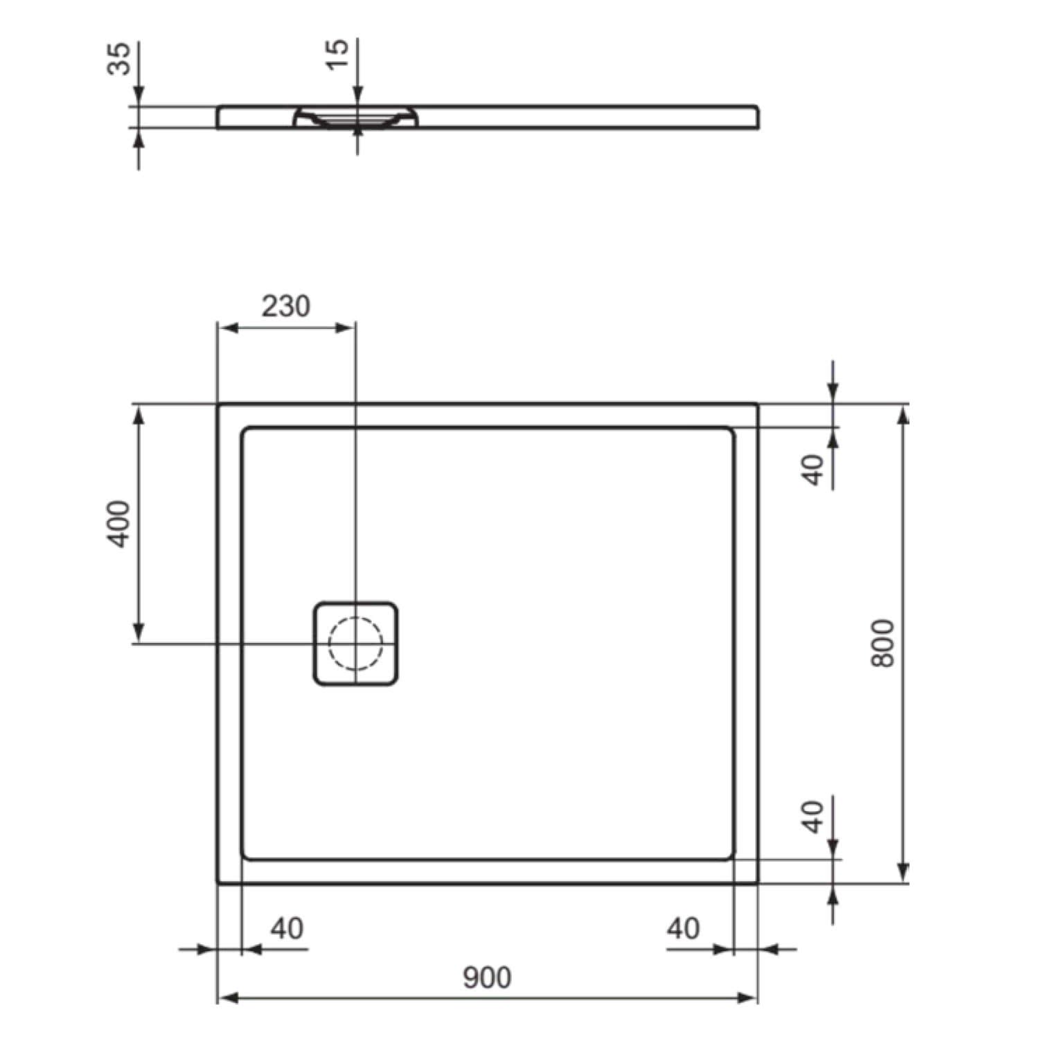 Ideal Standard Ultra Flat Evo Brausewanne 90 x 80 cm