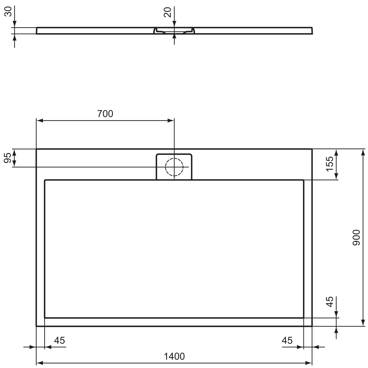 Ideal Standard Ultra Flat S i.life Rechteck-Brausewanne 140 x 90 cm, bodeneben