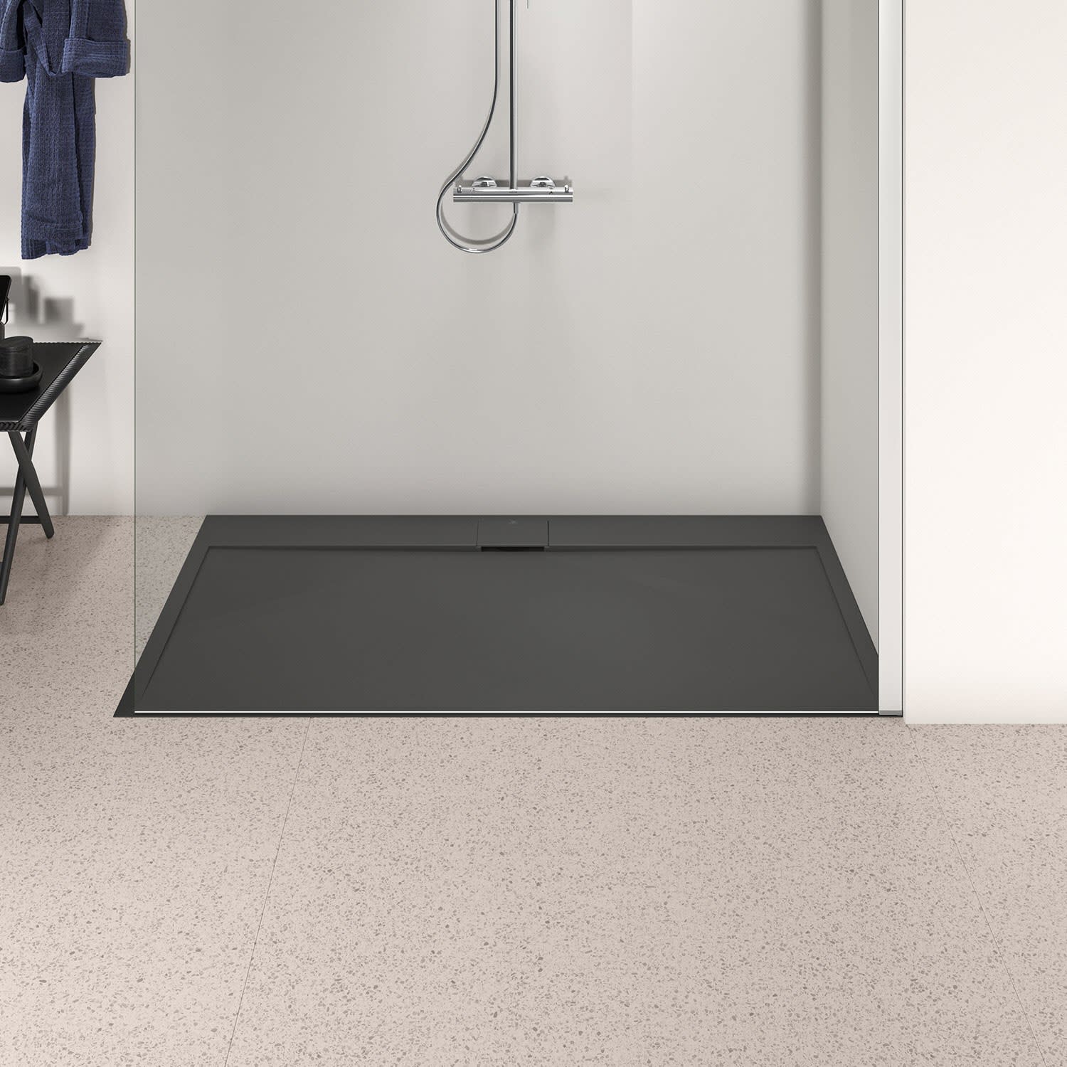 - ultraflache Duschwanne ohne Kanten mit 15 mm Innentiefe