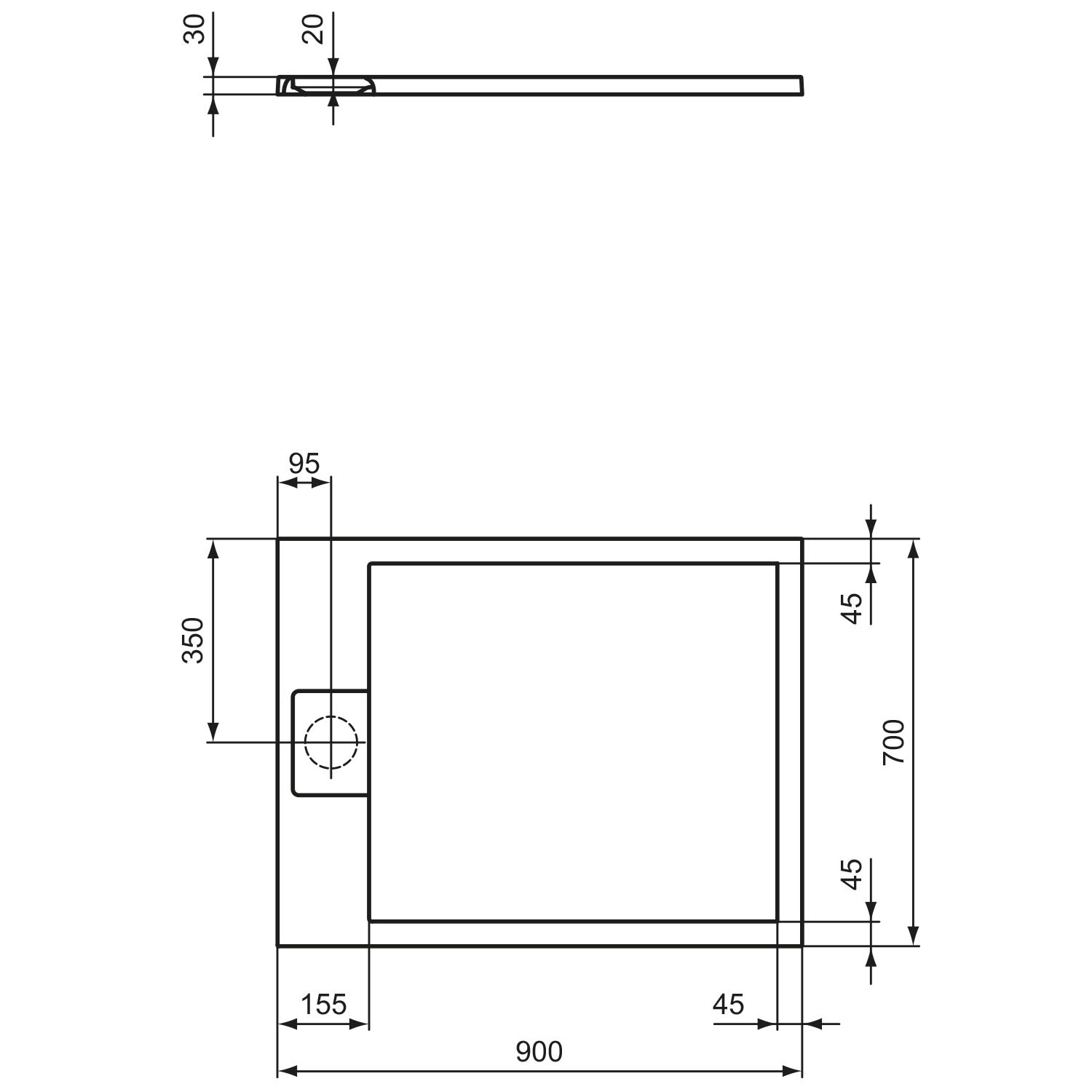 Ideal Standard Ultra Flat S i.life Rechteck-Brausewanne 90 x 70 cm, bodeneben