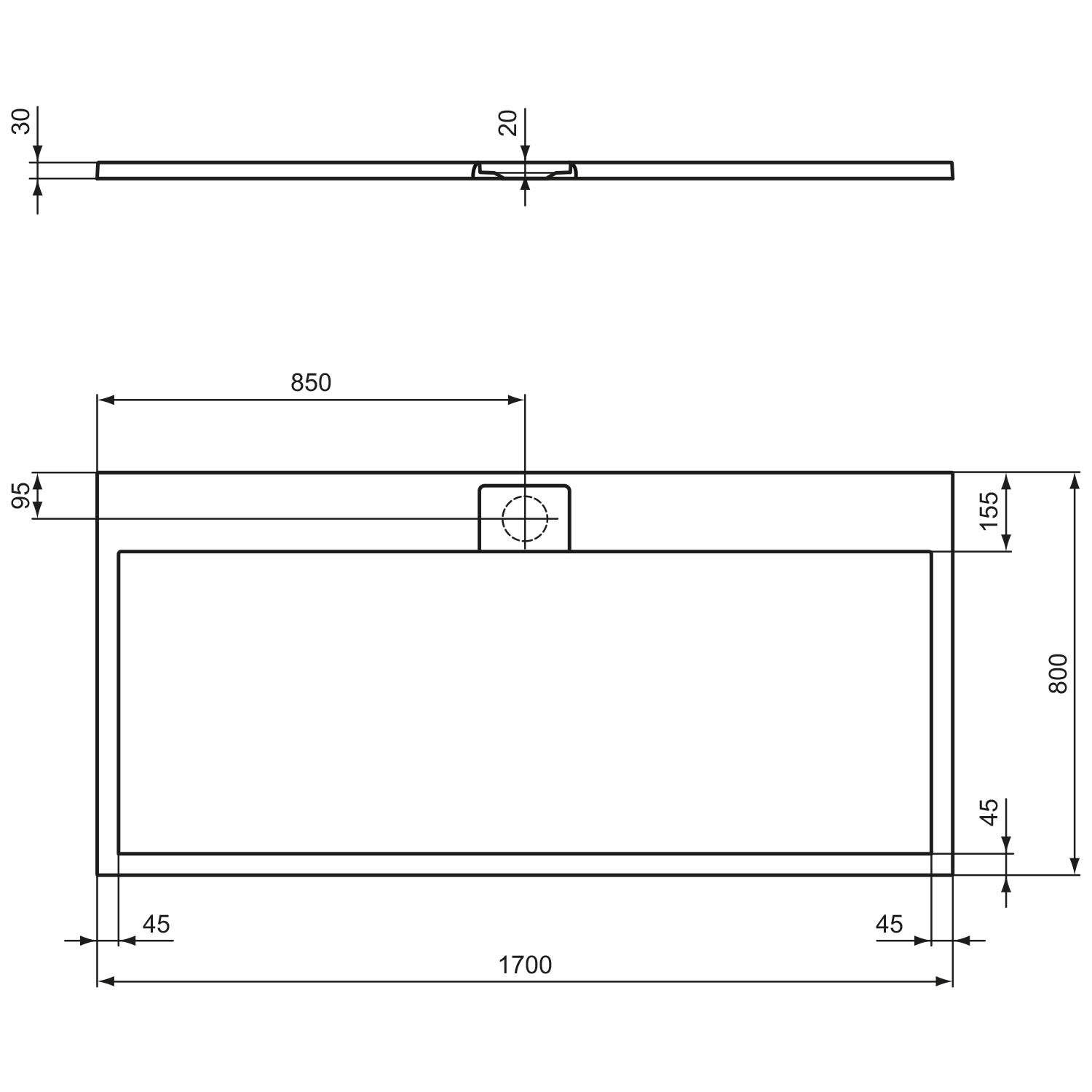 - ultraflache Duschwanne ohne Kanten mit 15 mm Innentiefe