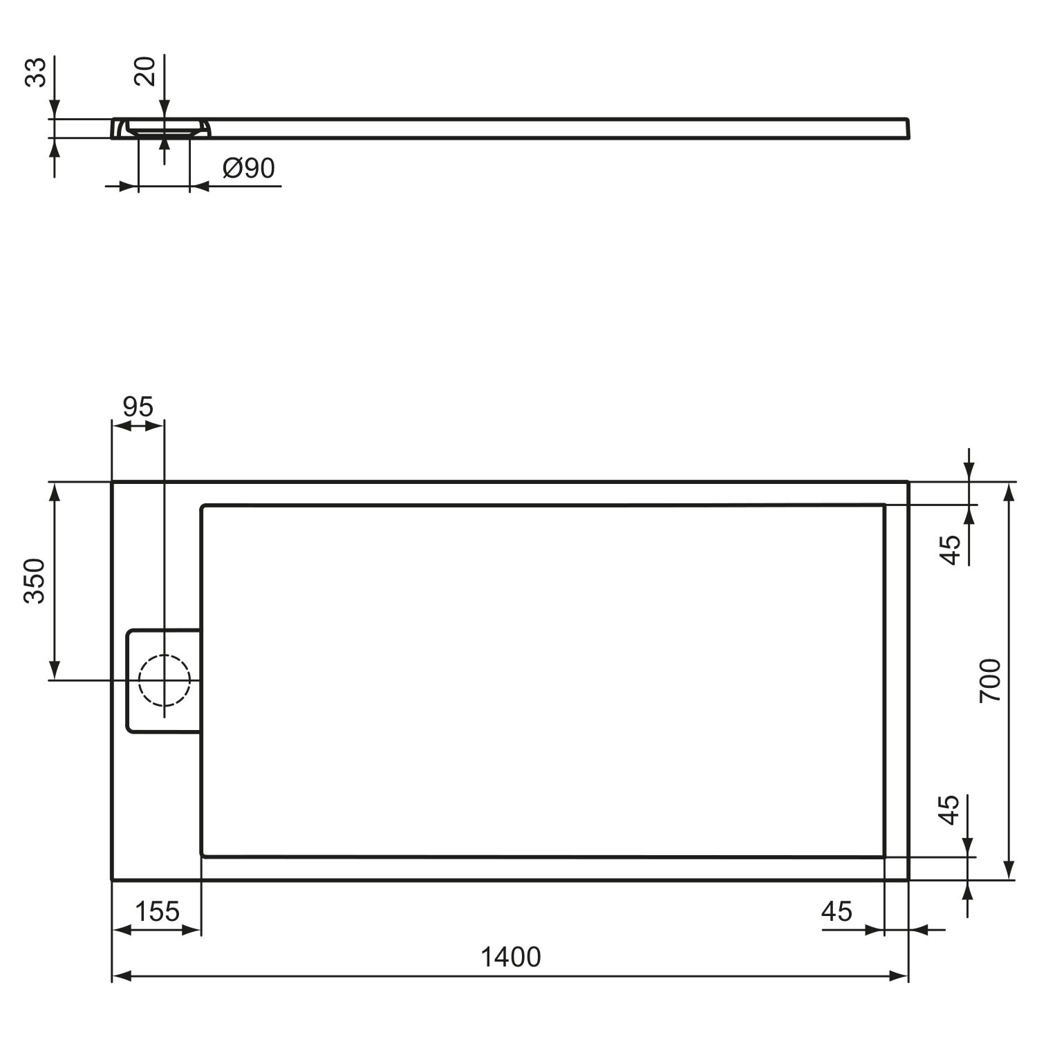 Ideal Standard Ultra Flat S i.life Rechteck-Brausewanne 140 x 70 x 3,3 cm