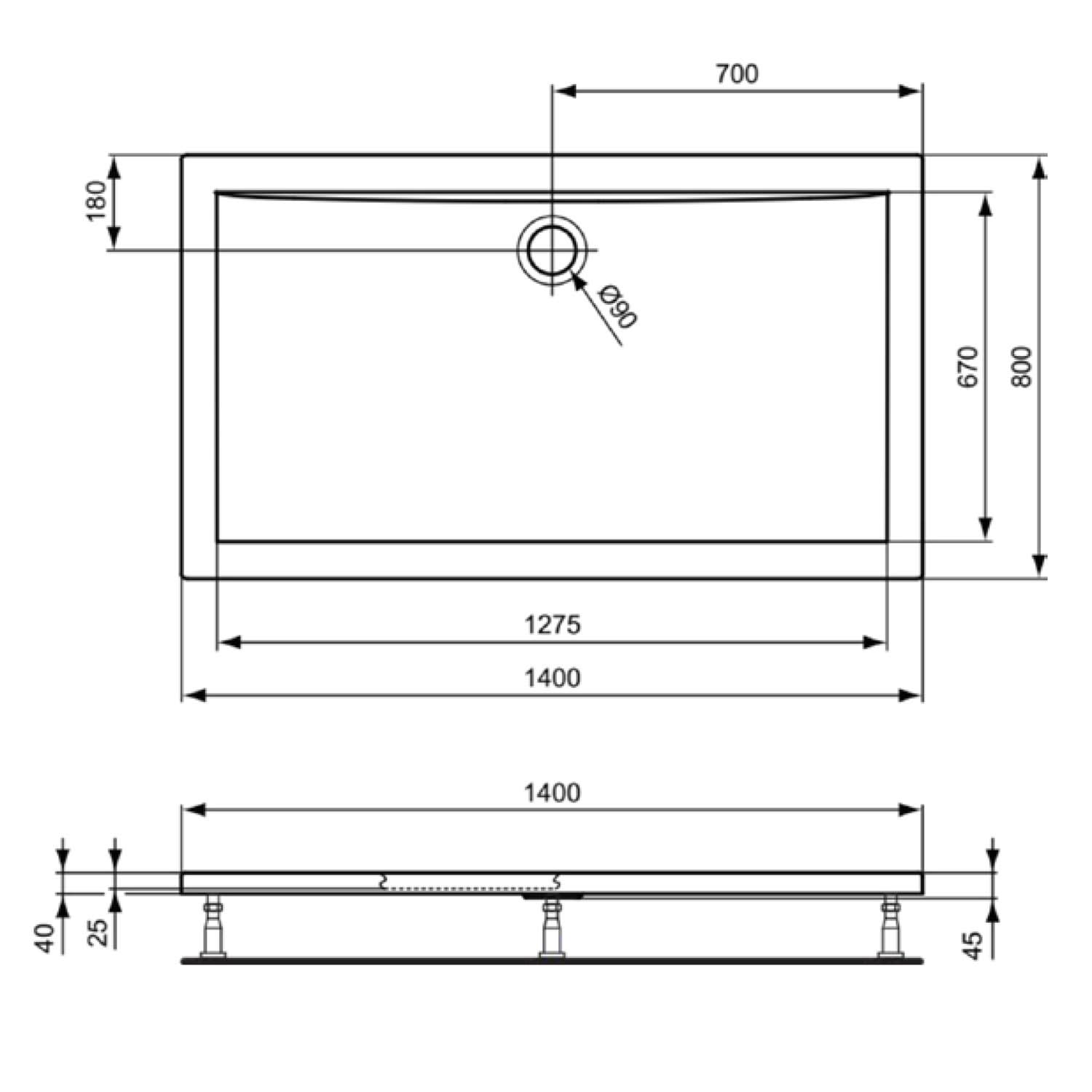 Ideal Standard Ultra Light Rechteck-Brausewanne 140 x 80 cm