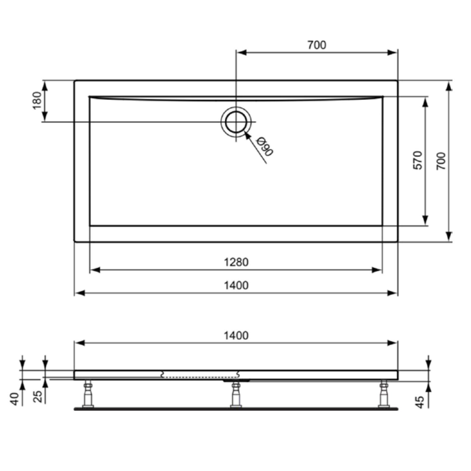 Ideal Standard Ultra Light Rechteck-Brausewanne 140 x 70 cm