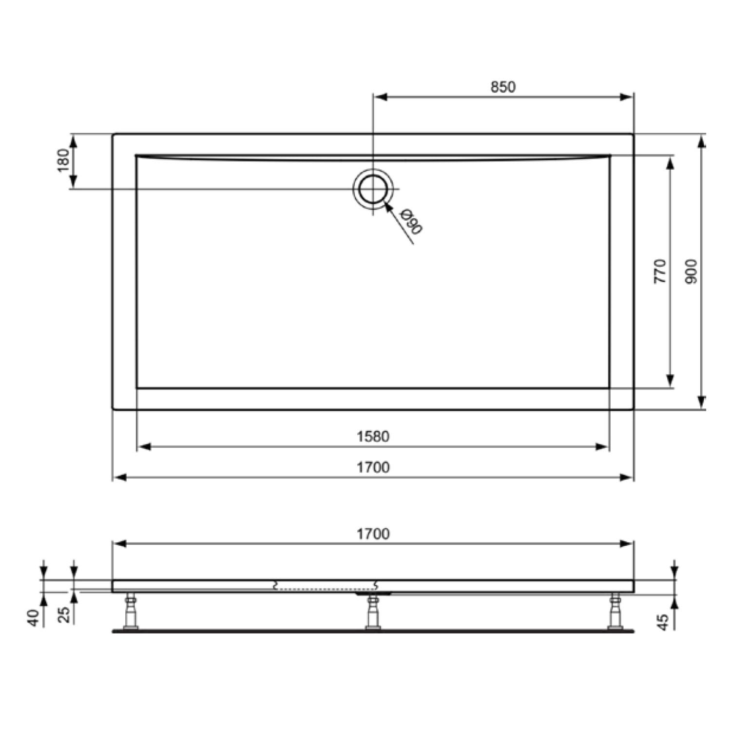 Ideal Standard Ultra Light Rechteck-Brausewanne 170 x 90 cm