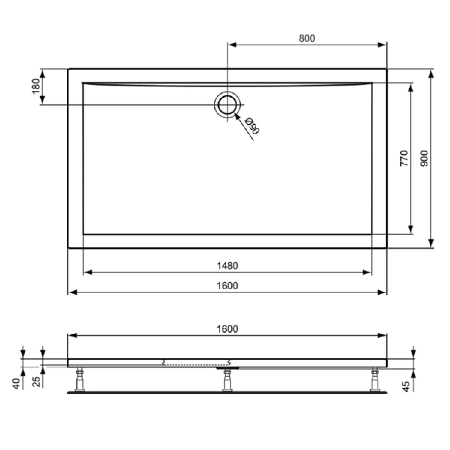 Ideal Standard Ultra Light Rechteck-Brausewanne 160 x 90 cm