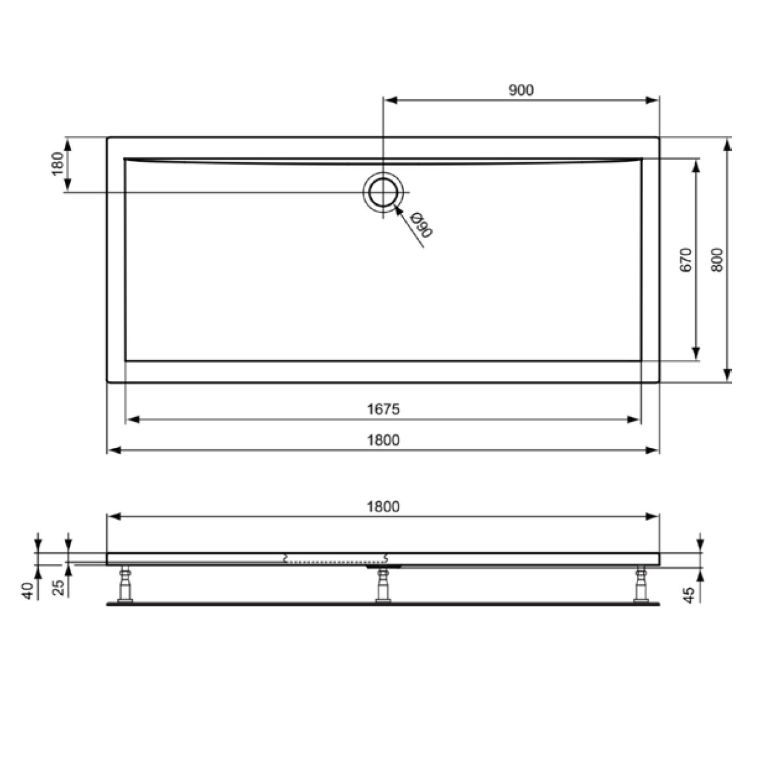 Ideal Standard Ultra Light Rechteck-Brausewanne 180 x 80 cm