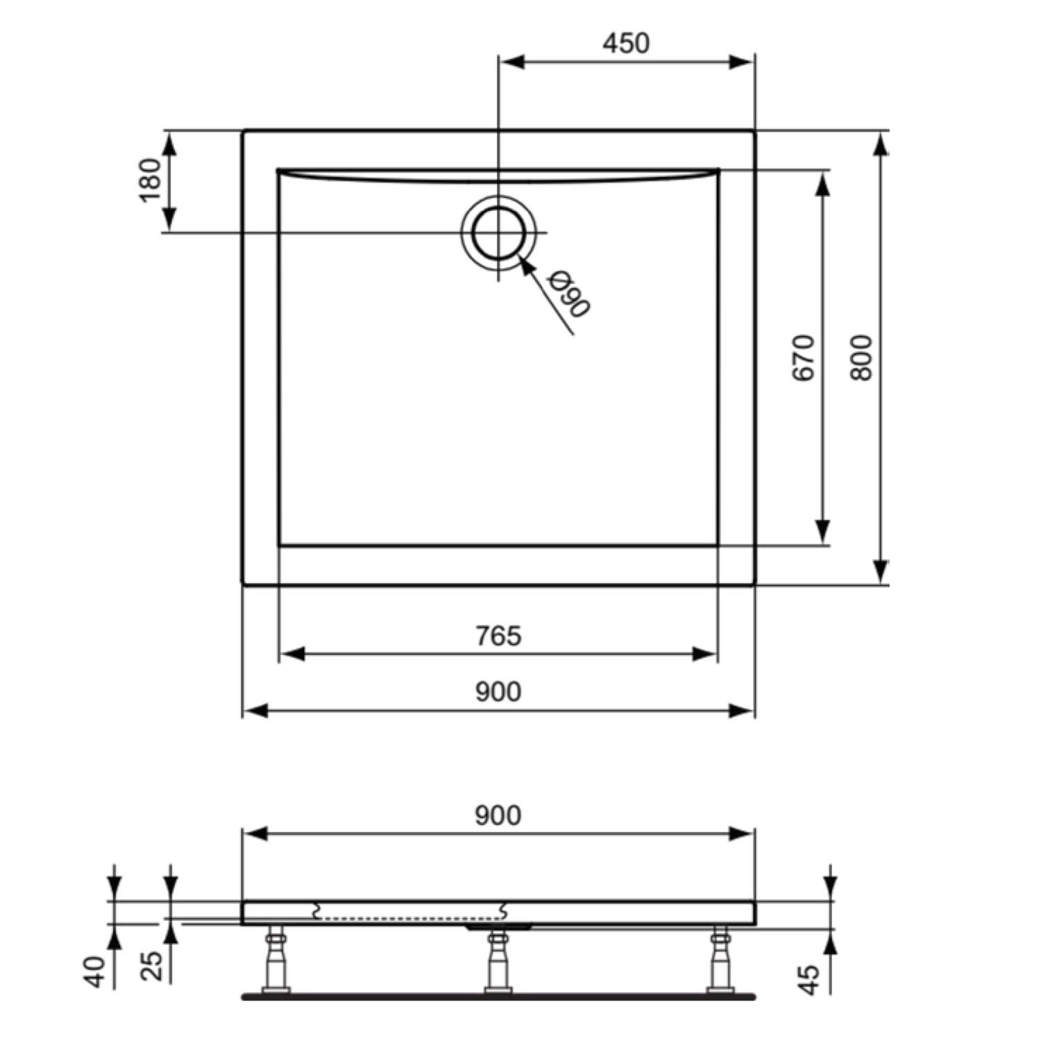 Ideal Standard Ultra Light Rechteck-Brausewanne 90 x 80 cm