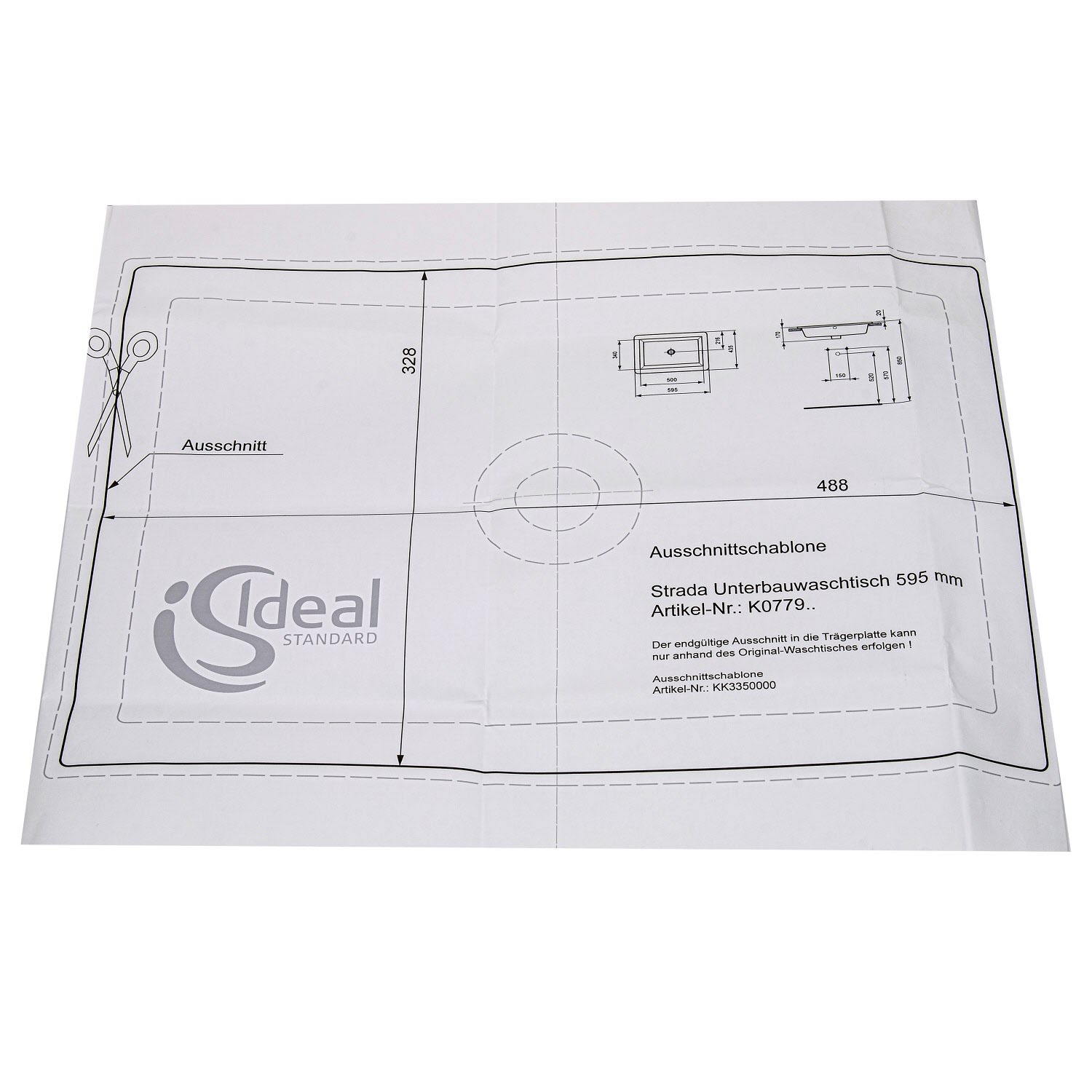 Ideal Standard Ausschnittschablone für Strada Unterbauwaschtisch 59,5 cm