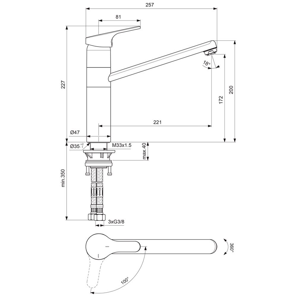 Ideal Standard CeraFit Einhebel-Küchenarmatur, hoher Rohrauslauf, Niederdruck