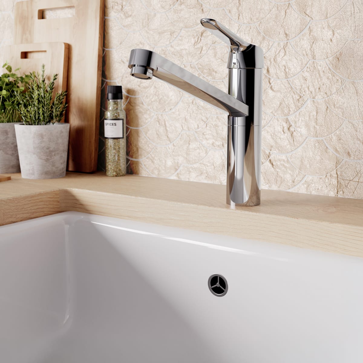 - schwenkbarer Rohrauslauf und Luftsprudler