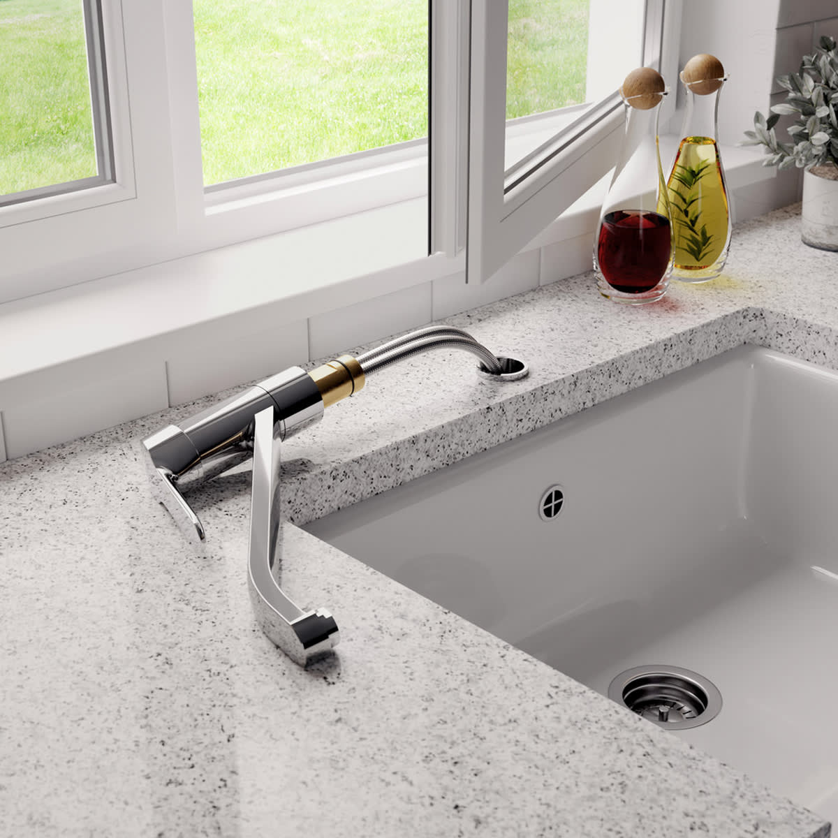 - schwenkbarer Rohrauslauf und Luftsprudler