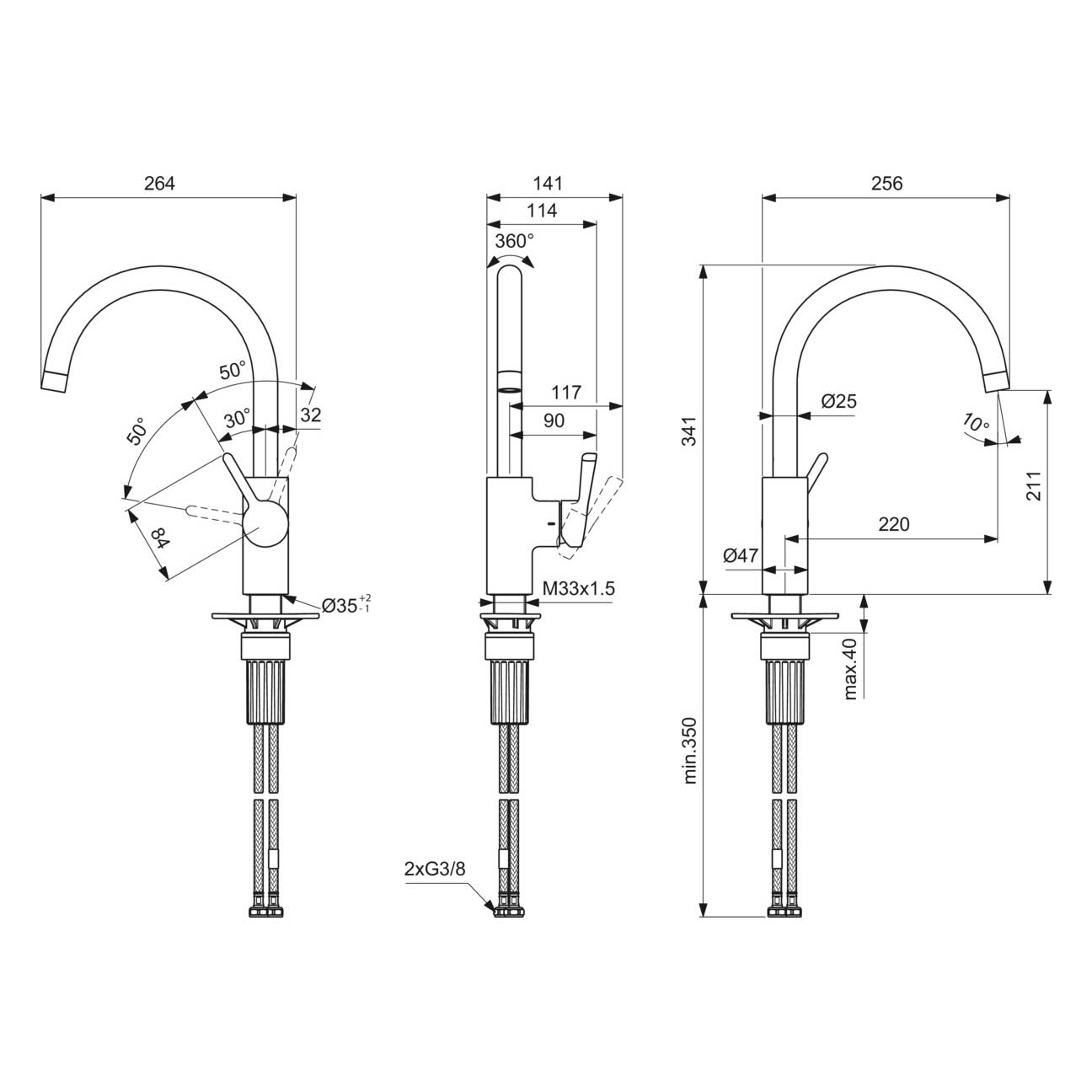- Schwenkbereich Auslauf: 360°