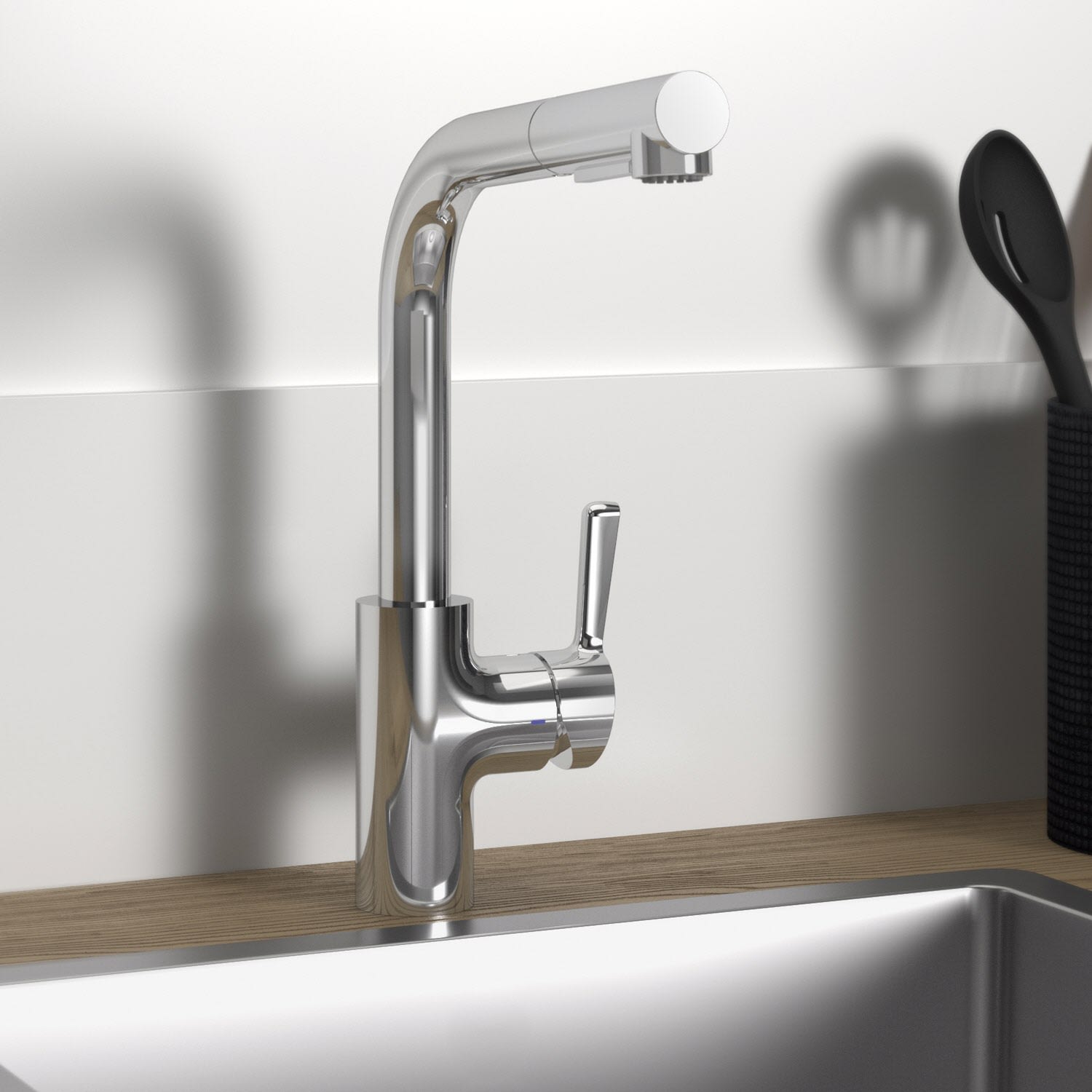 Mit ihrem hohen L-förmigen Auslauf und dem 360° Schwenkbereich bietet die Armatur Ihnen maximale Flexibilität beim Arbeiten in der Küche. Die Auslaufhöhe von 29,2 cm sorgt für genügend Platz für große Töpfe und Schüsseln. Mit der integrierten 2-Funktionshandbrause erweitern Sie Ihren Aktionsradius und erleichtert die Reinigung Ihrer Spüle. Mit dem integrierten Luftsprudler genießen Sie einen angenehm weichen Wasserstrahl.