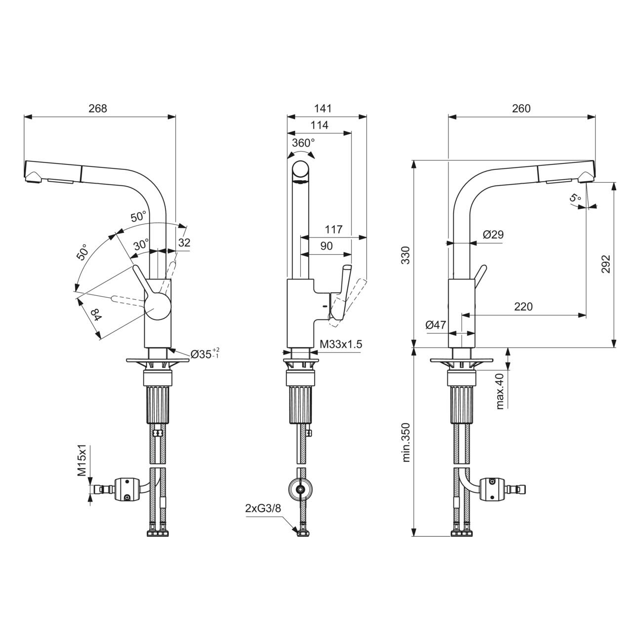 - Schwenkbereich Auslauf: 360°