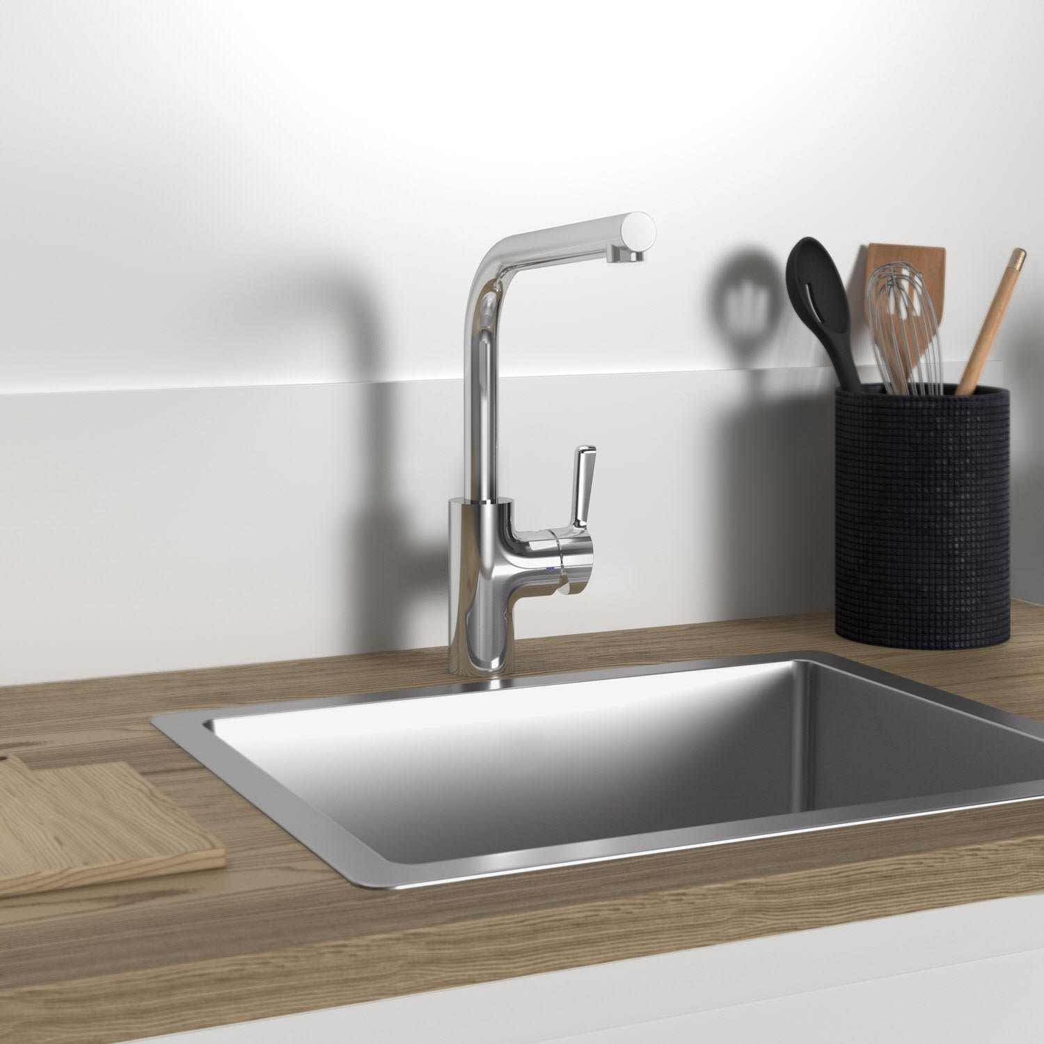 Mit ihrem hohen L-förmigen Auslauf und dem 360° Schwenkbereich bietet die Armatur Ihnen maximale Flexibilität beim Arbeiten in der Küche. Die Auslaufhöhe von 29,5 cm sorgt für genügend Platz für große Töpfe und Schüsseln.