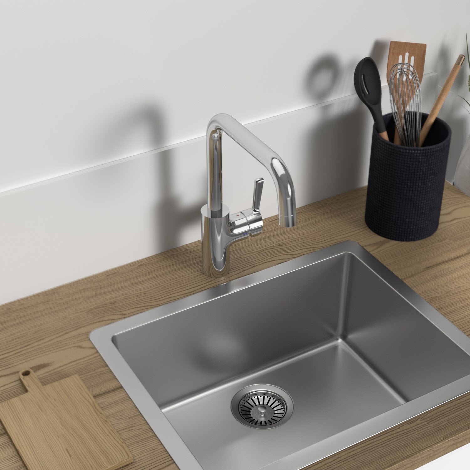 Mit ihrem hohen U-förmigen Auslauf und dem 360° Schwenkbereich bietet sie Ihnen maximale Flexibilität beim Arbeiten in der Küche. Mit einer Auslaufhöhe von 22 cm bietet die Armatur genügend Platz für große Töpfe und Schüsseln.