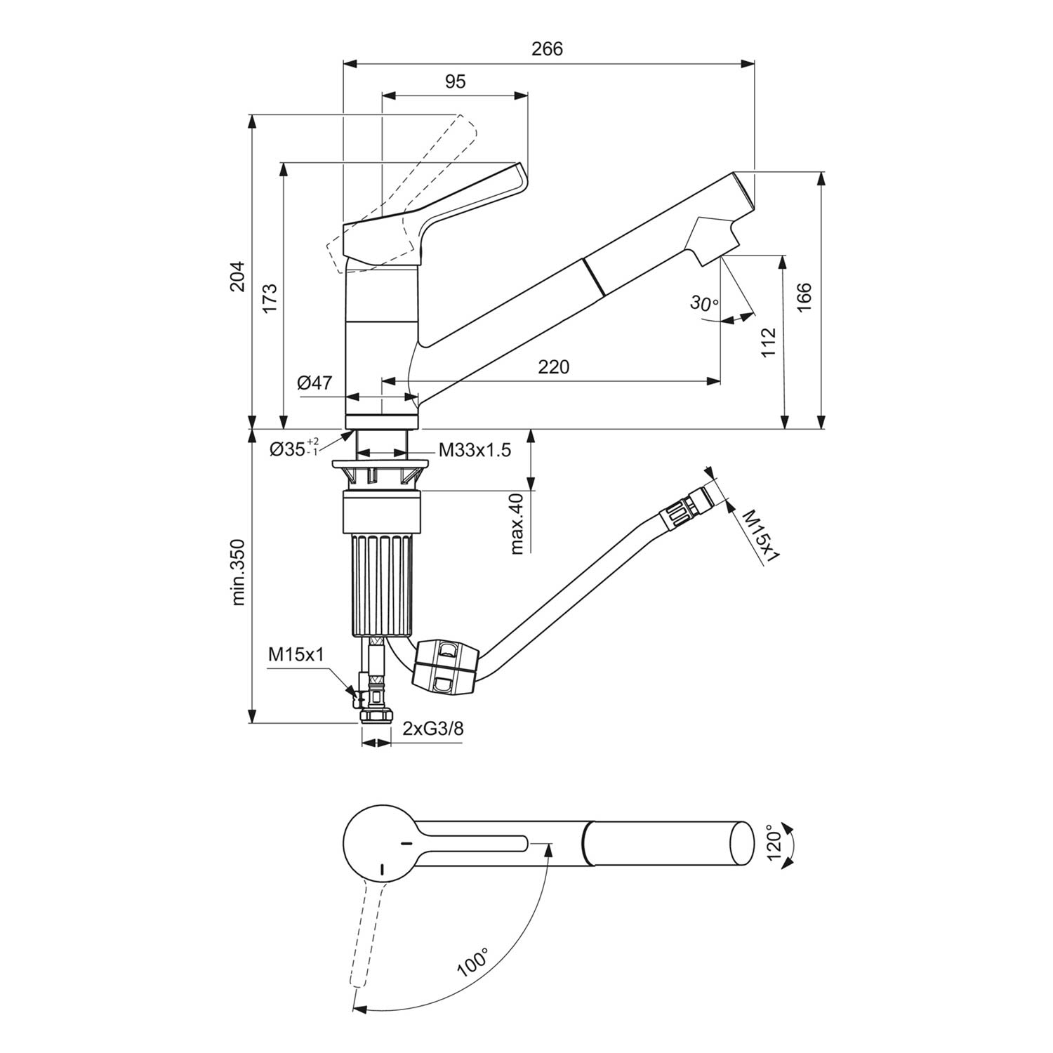 - Kartuschenschwenkbereich: 100°