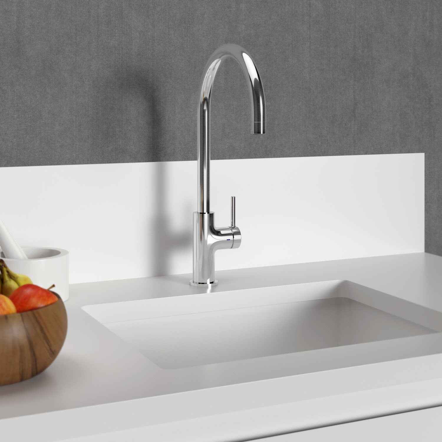Die Ceraline Nuovo Küchenarmatur von Ideal Standard vereint modernes Design mit praktischer Funktionalität. Mit ihrem hohen Auslauf und dem 360° Schwenkbereich bietet sie Ihnen maximale Flexibilität beim Arbeiten in der Küche. Die Auslaufhöhe von 25,9 cm sorgt für genügend Platz für Töpfe und Schüsseln. Mit dem integrierten Luftsprudler genießen Sie einen angenehm weichen Wasserstrahl und die integrierte Temperaturbegrenzung schützt vor zu heißem Wasser. Dank des Easy-Fix+ Schnellmontagesystems lässt sich die Armatur besonders einfach installieren und sorgt für ein schnelles und stressfreies Montageerlebnis. Überzeugen Sie sich selbst und erleben Sie die Vorteile dieser Küchenarmatur in Ihrem Zuhause.