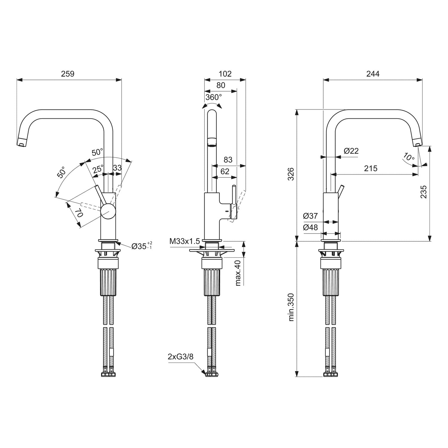 - 3,5 cm erforderlicher Hahnlochdurchmesser