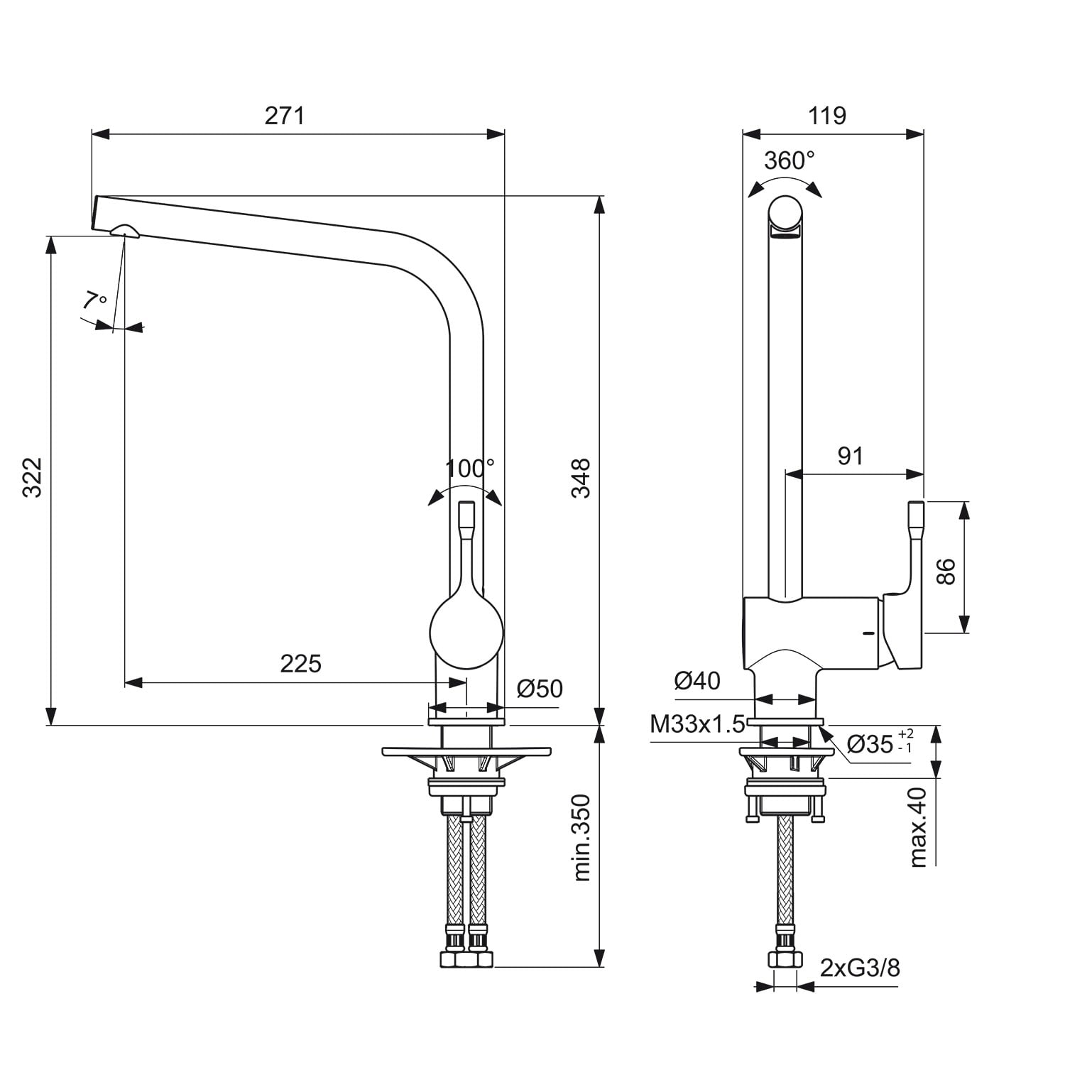 - Schwenkbereicher vom Auslauf: 360 Grad