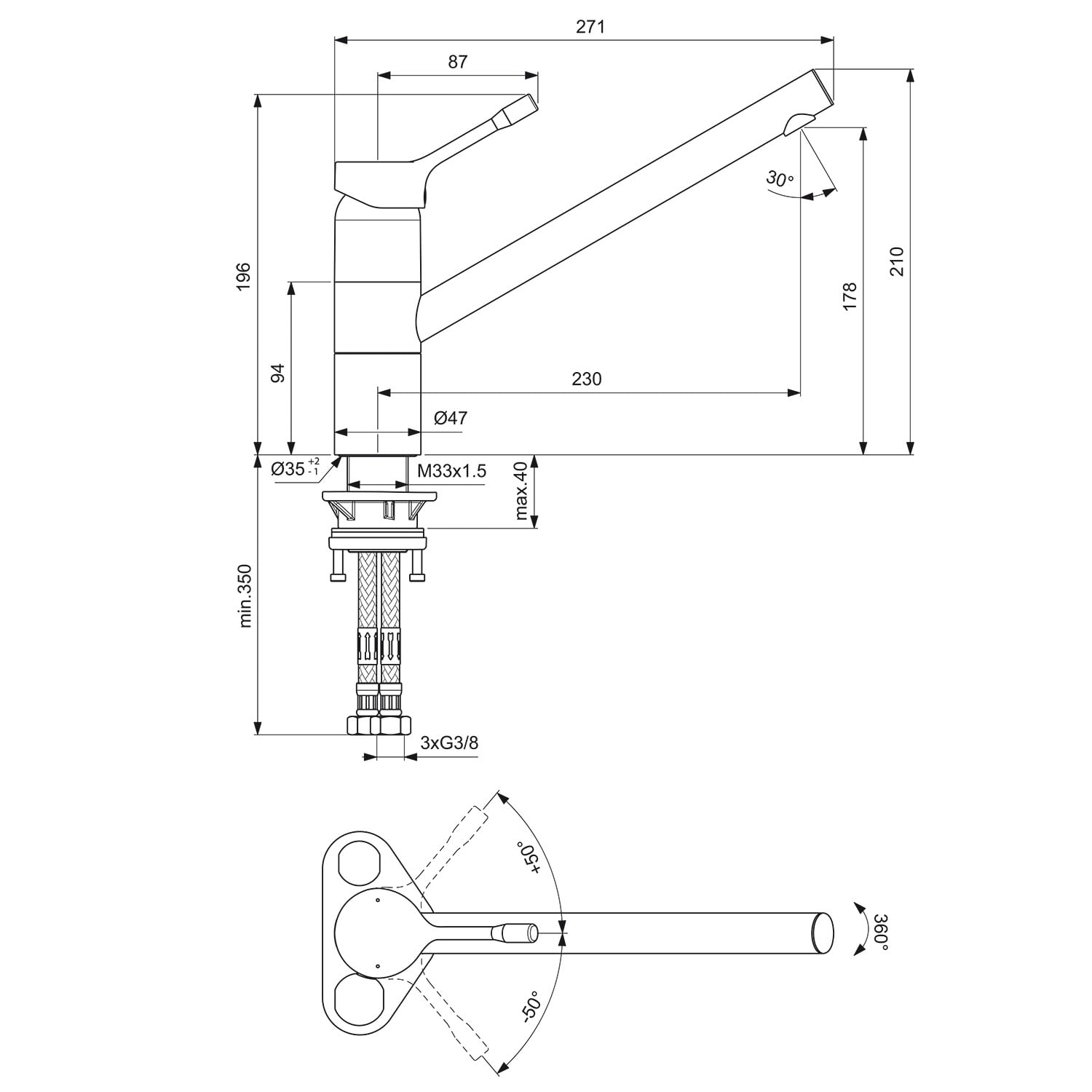 - flexible Anschlussschläuche G3/8