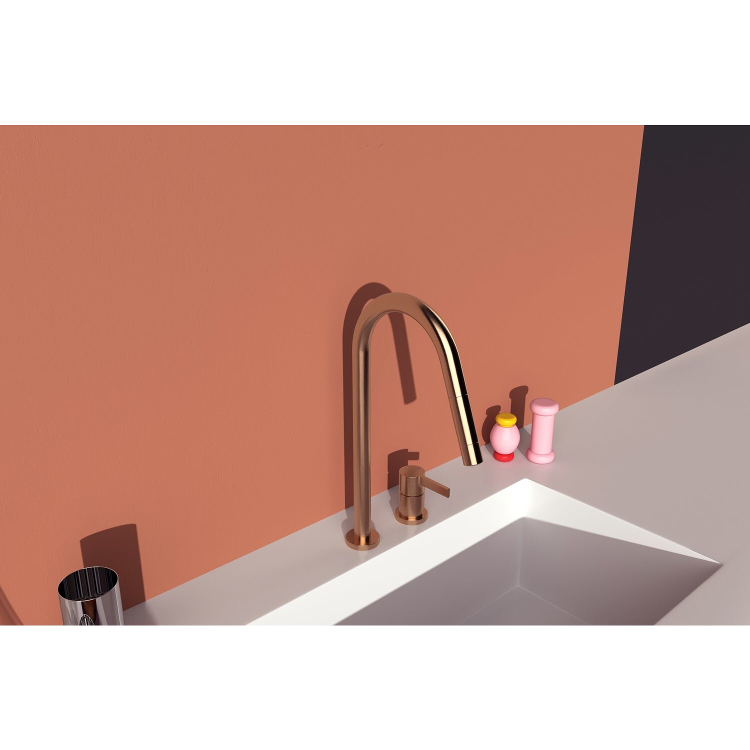 - Auslauf: drehbar, ausziehbar mit 2-Funktions-Handbrause (Rohr)