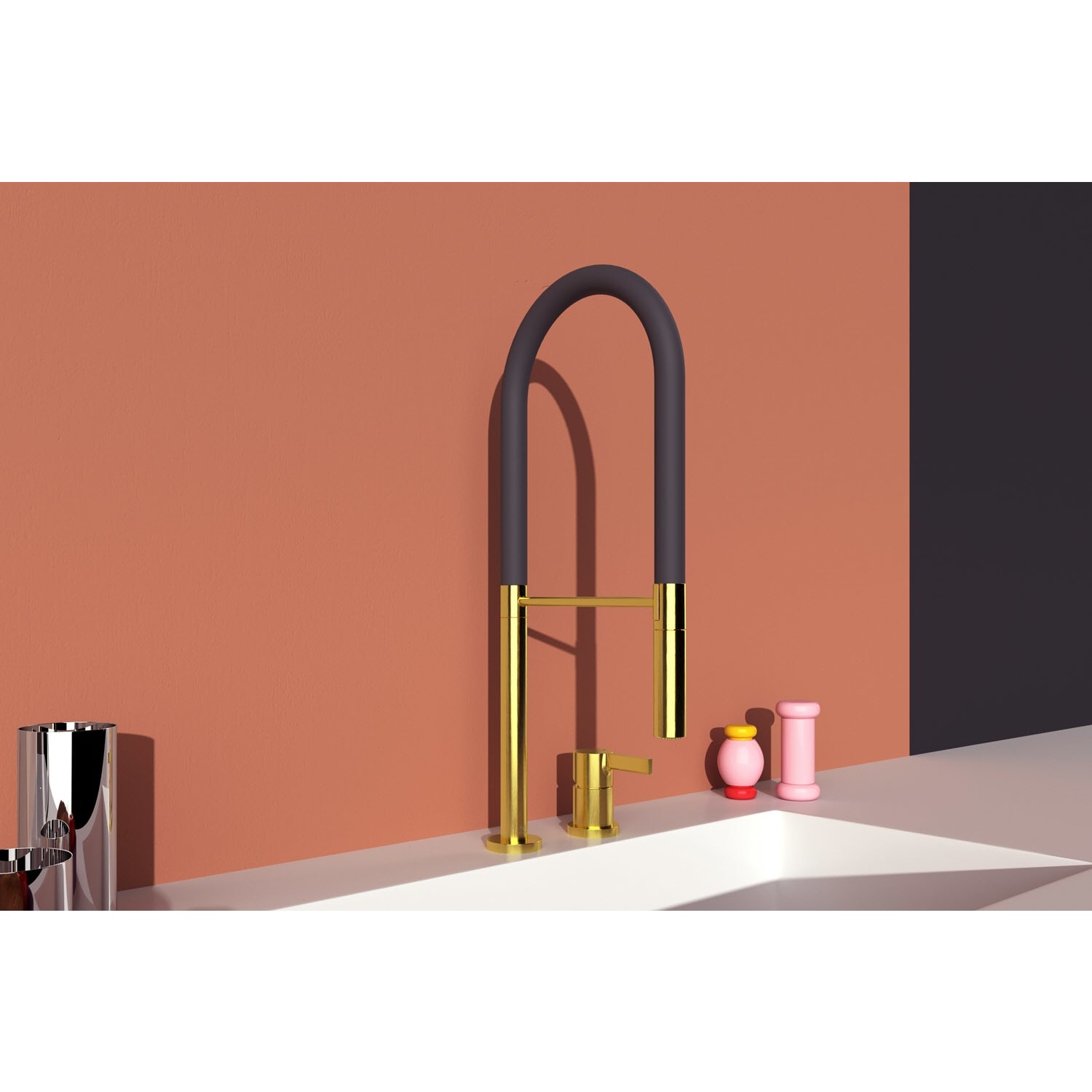 - Auslauf: drehbarer Federarm mit 2-Funktions-Handbrause (Rohr)