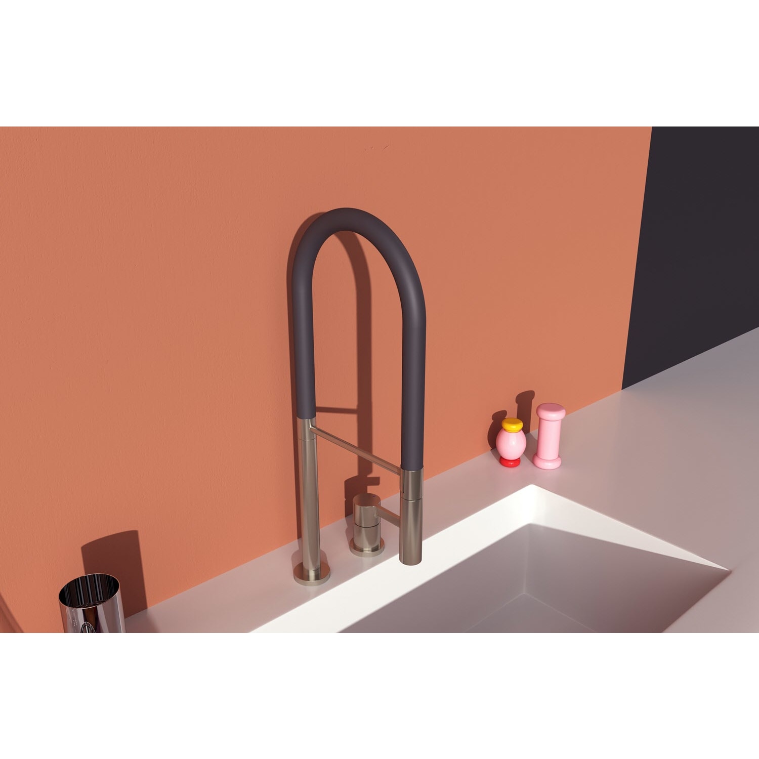 - Auslauf: drehbarer Federarm mit 2-Funktions-Handbrause (Rohr)