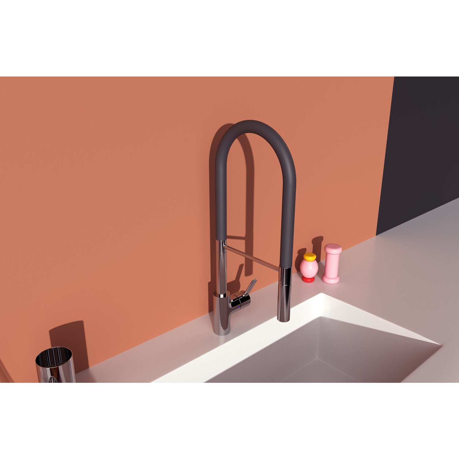 - Auslauf: drehbarer Federarm mit 2-Funktions-Handbrause (Rohr)