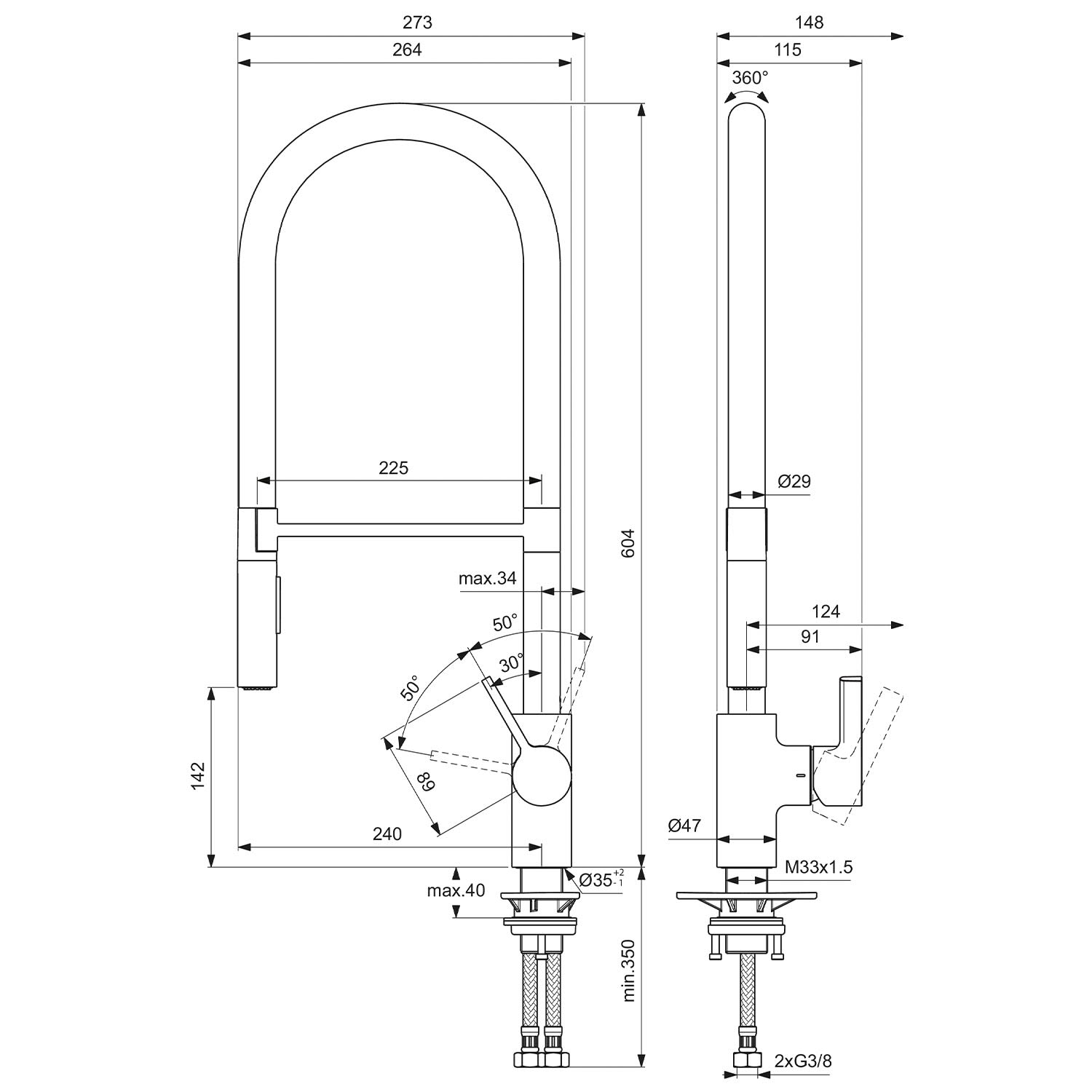 - 35 mm erforderlicher Hahnlochdurchmesser