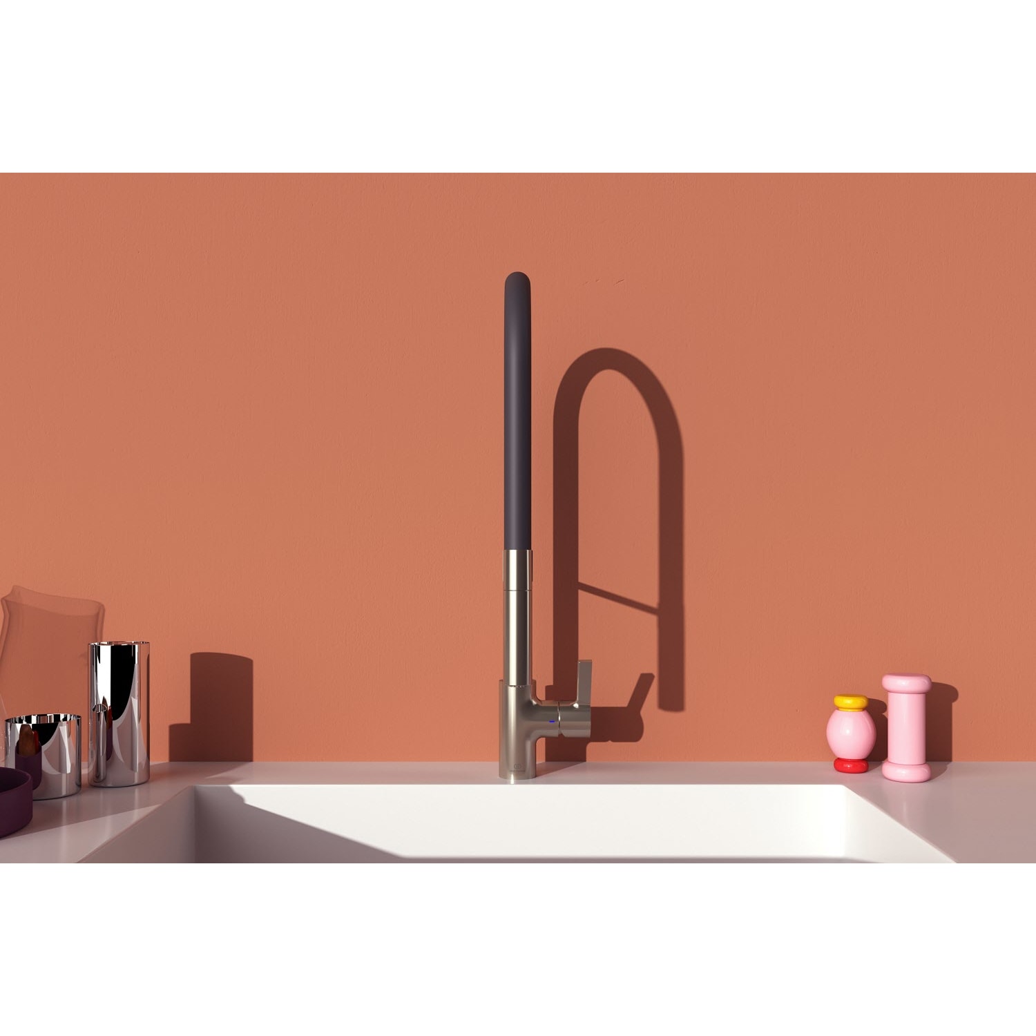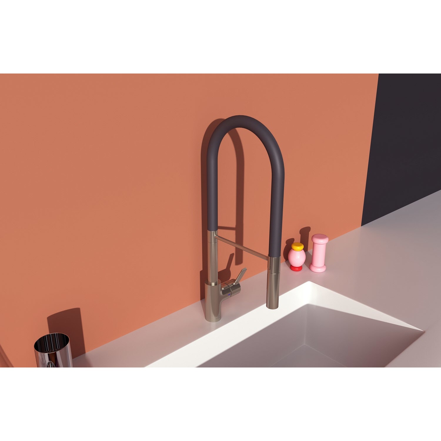 - Auslauf: drehbarer Federarm mit 2-Funktions-Handbrause (Rohr)