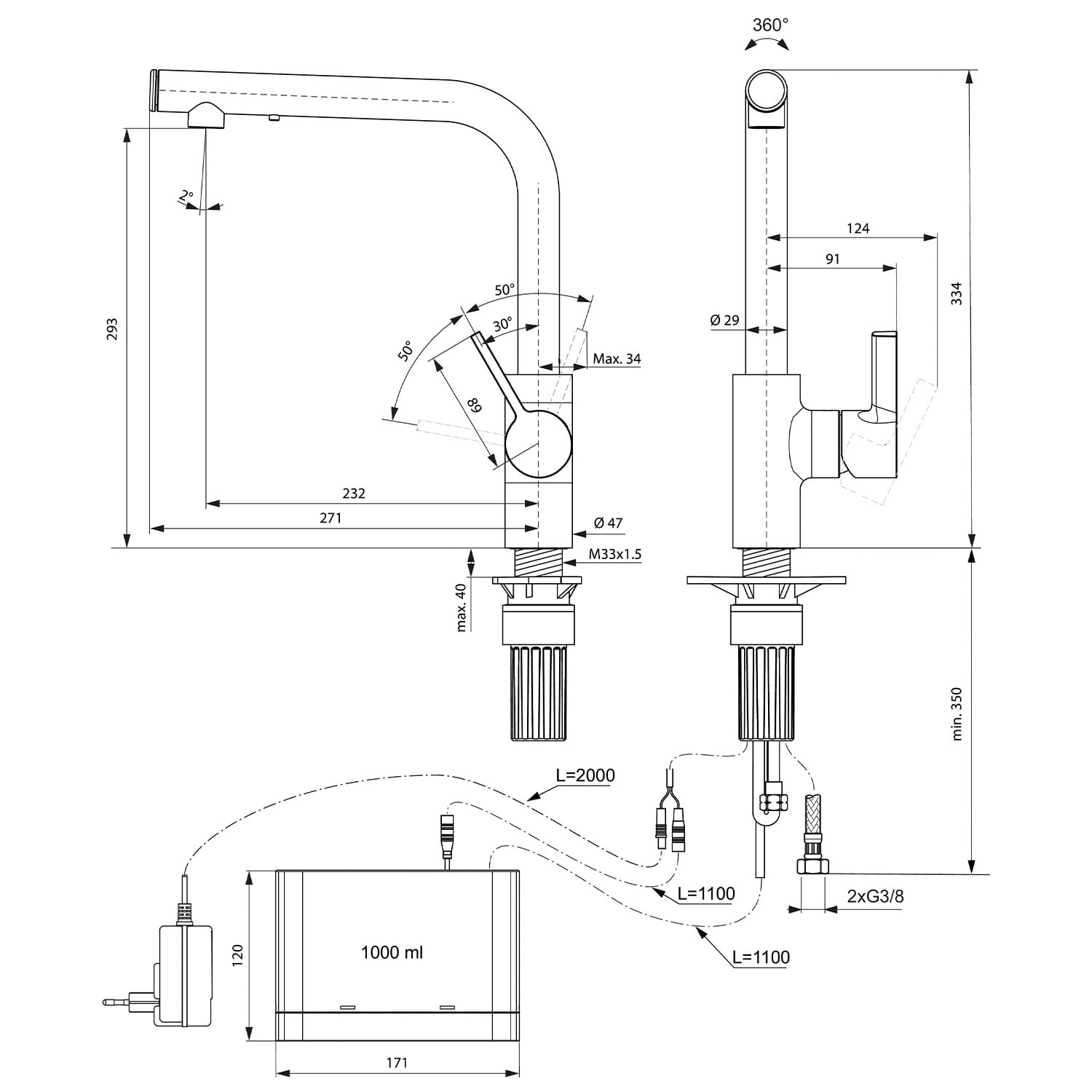 - Schwenkbereicher vom Auslauf: 360 Grad