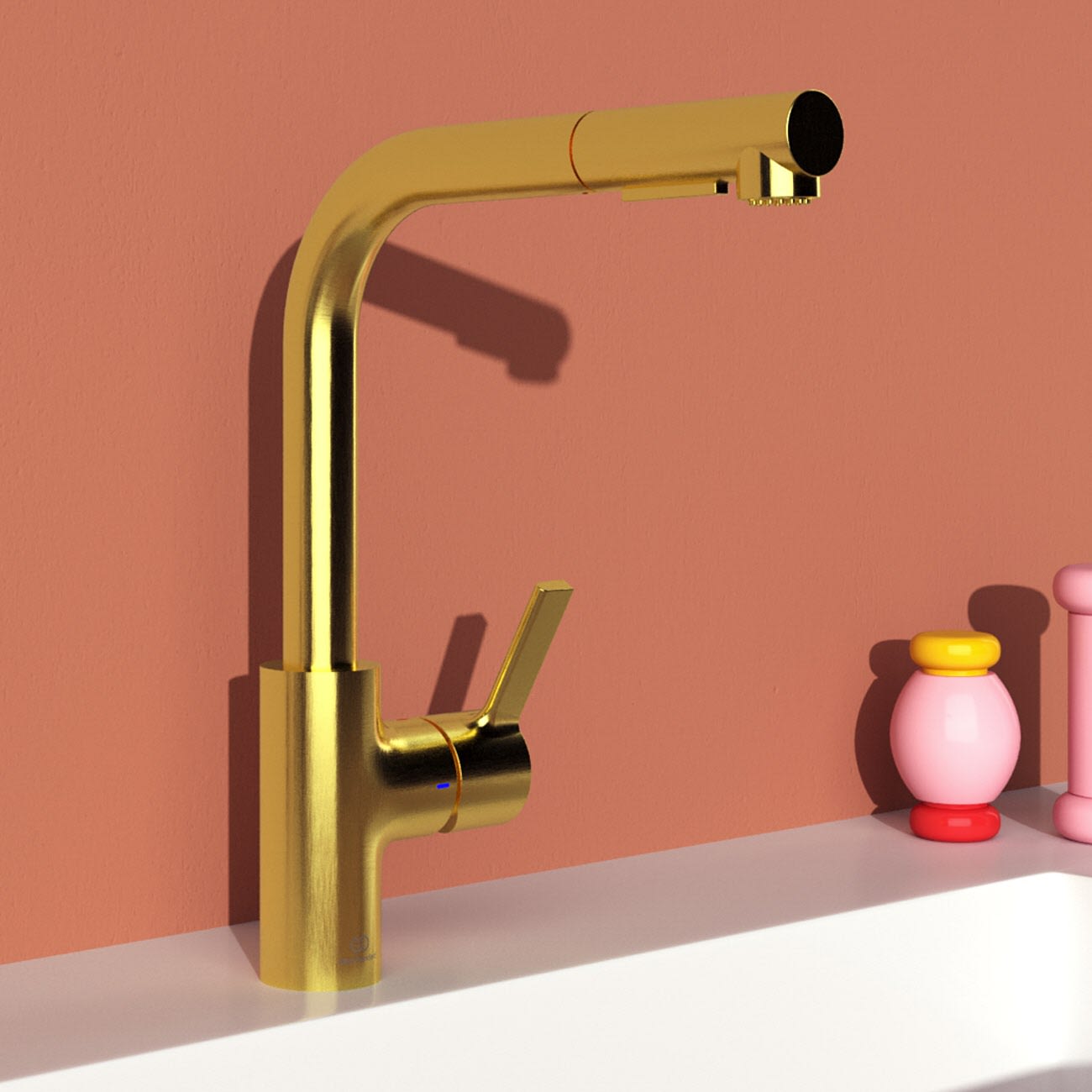 Ideal Standard Gusto Küchenarmatur Ausladung 23,5 cm L-Auslauf 2F-Brause