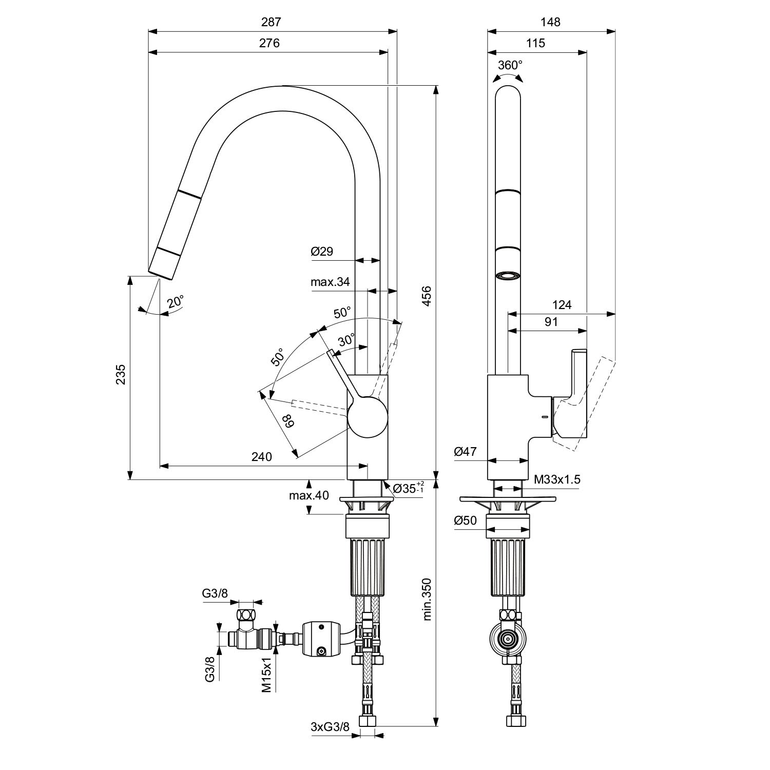 Ideal Standard Gusto Küchenarmatur Ausladung 24 cm 1-Funktions-Brause Niederdruck